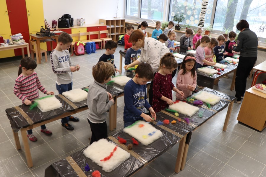 Pod strokovnim vodstvom ga. Janje Beguš smo iz filca izdelali posebna darila, ki jih bodo dobile mame za njihov praznik.