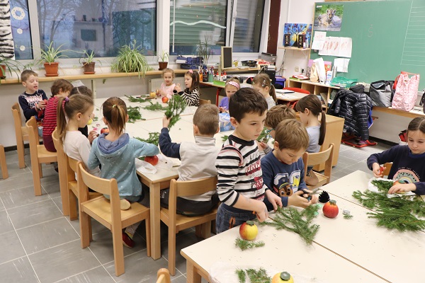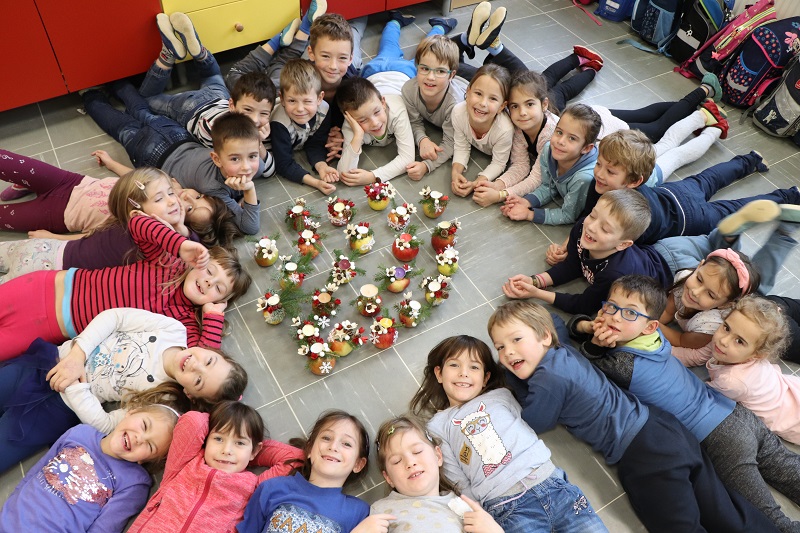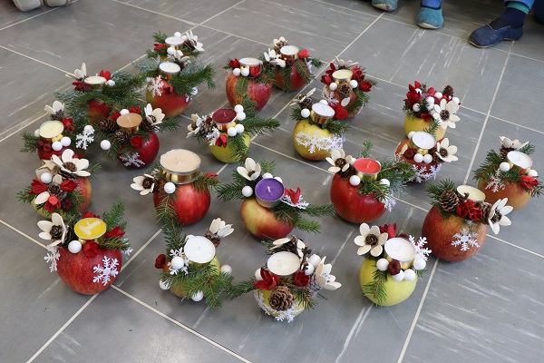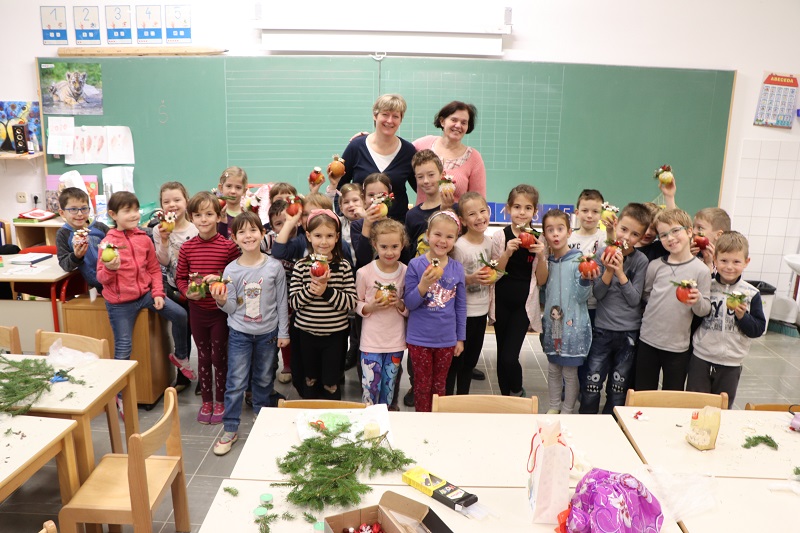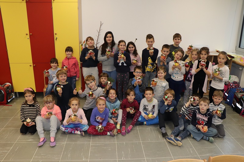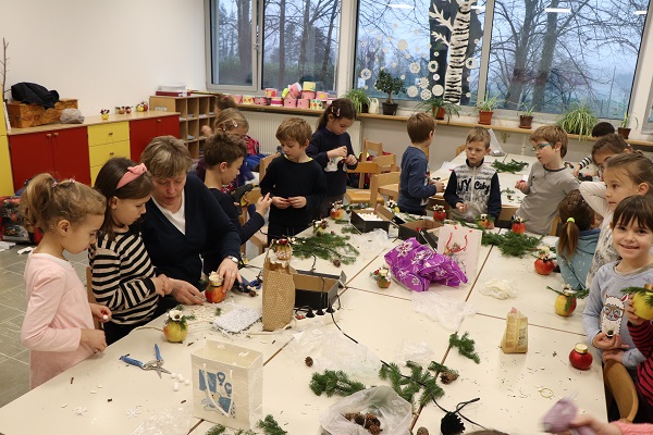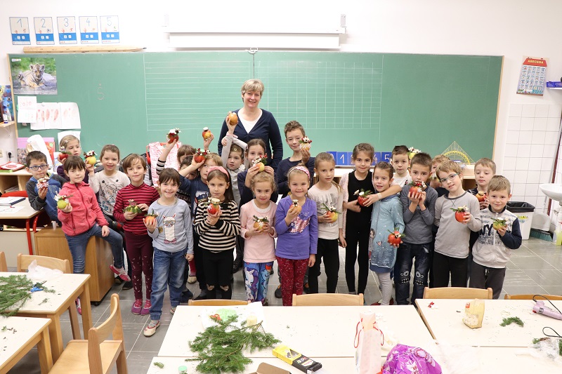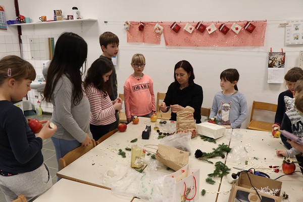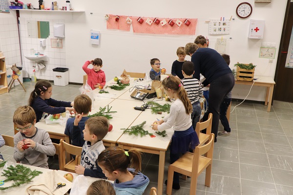 Praznično okrašenega doma si skoraj ne predstavljamo brez prazničnega aranžmaja na mizi. Tokrat nam je prišla na pomoč cvetličarka Mojca Leban, ki ima zelo izvirne in enkratne ideje na področju cvetličarstva, aranžiranja in ustvarjanja. Pokazala nam je moderen aranžma iz naravnih materialov (jabolko, smrekove vejice, storži, bučna semena …). Učenci so pri kreiranju novoletnih aranžmajev zelo uživali in se prepustili lastni ustvarjalnosti. Ustvarjali smo skupaj z učenci 1. in 3. razreda NIS PŠIUOPP.