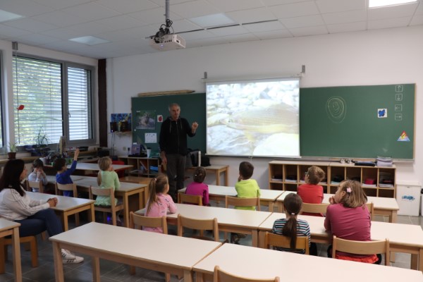 Predavanje je vodil g. Dušan Jesenšek. Predstavil je naše ribe in druge vodne organizme s poudarkom na ekologiji.