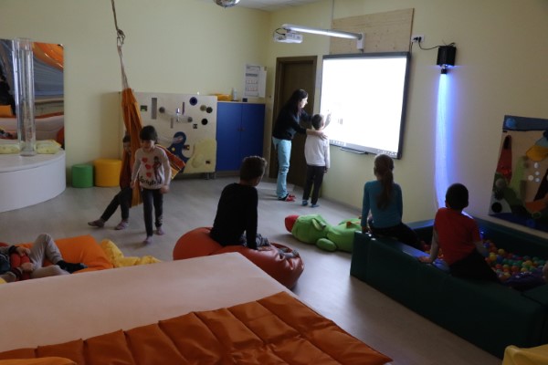 Dan smo izkoristili tudi za obisk multisenzorne sobe, ki predstavlja prostor s prijetnim ozračjem in posebno izbrano opremo. Senzorna soba je namenjena za pomiritev ali stimulacijo uporabnikov, s katero spodbujamo rabo čutil. V njej uporabljamo različne zvočne, vidne, aromatične in druge senzorične dražljaje.