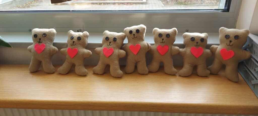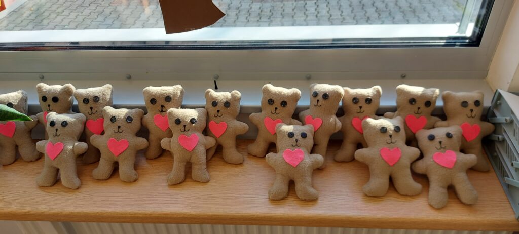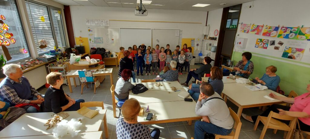 Na mrzli novembrski dopoldan so nas obiskale babice in dedki učencev 1. b razreda. Združili smo moči pri šivanju srčnih medvedkov, ki se bodo v prazničnem decembru »odpravli« k starejšim občanom in jim tako ponesli naša sporočilca ter jim polepšali dan. Izkušenejše roke babic in dedkov so bile dobra pomoč mlajši generacijam.