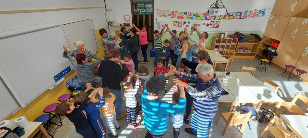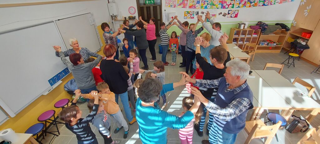 Dan je potekal v prijetnem vzdušju medsebojnega spoznavanja, sodelovanja in pomoči. Ob koncu našega druženja smo se učenci starim staršem predstavili s tremi pesmicami in se ob skupni igri sprostili in nasmejali. Verjamemo, da smo vsi udeleženi preživeli lepo, koristno in ustvarjalno dopoldne.