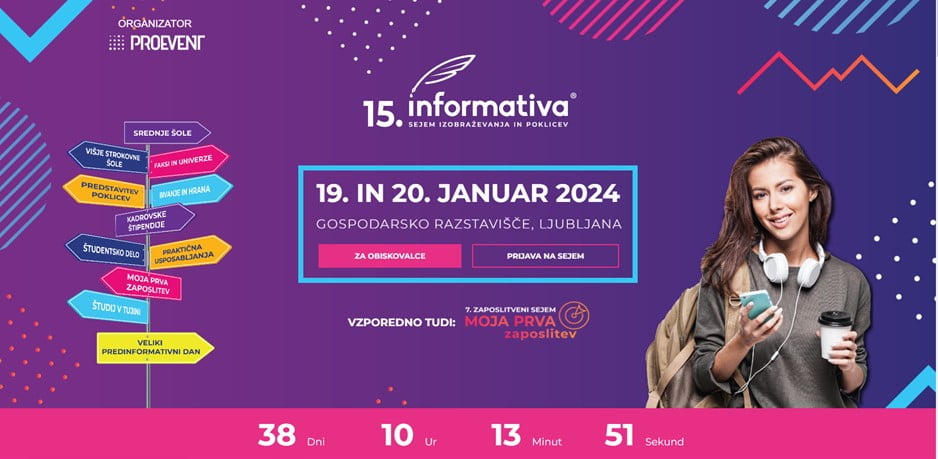 Na Gospodarskem razstavišču se bo v petek in soboto, 19. in 20. januarja 2024, odvijala že 15. informativa, največji vseslovenski sejem izobraževanja in poklicev. Vstop na prireditev je za obiskovalce prost.