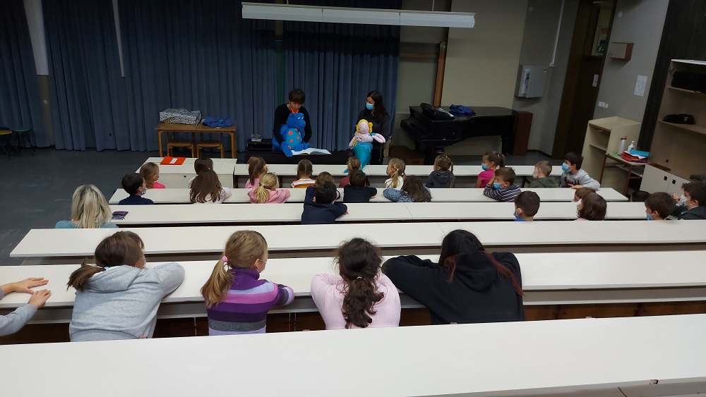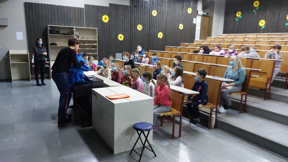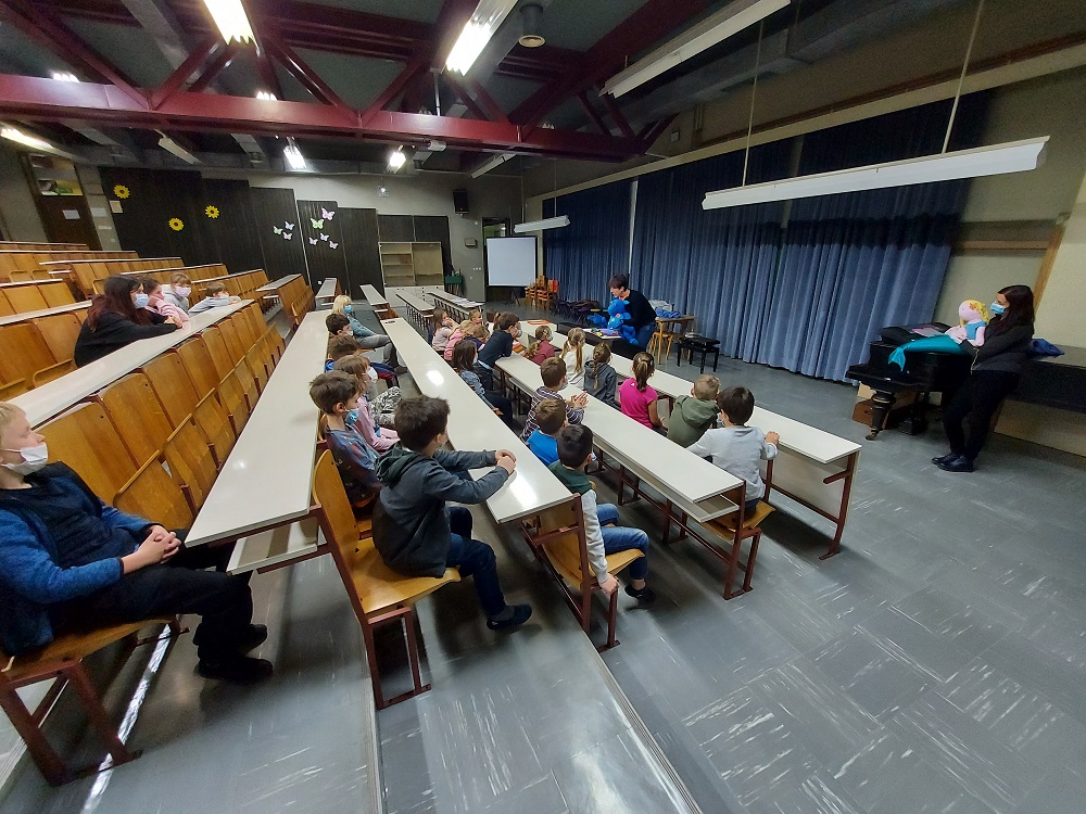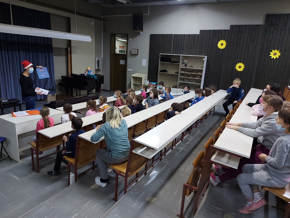 V tem prelepem decembrskem času, smo v goste povabili tolmačko slovenskega znakovnega jezika, gospo Natalijo Rot. Najprej smo spoznali razlike med slišečimi učenci in učenci, ki imajo težave s sluhom. Spoznali smo kako učiteljica pritegne pozornost učencev, ko jim želi kaj sporočiti. Nato nam je znakovni jezik približala s pomočjo pravljice Zmajček in morska deklica, skozi roke prikupnega Zmajčka. Zgodbo smo učenci 2. b razreda z zanimanjem poslušali skupaj z učenci 1., 3. in 5. razreda NIS Podružnične šole za izobraževanje in usposabljanje otrok s posebnimi potrebami. Ker je bila zgodba drugačna in je bila povedana na drugačen način, je otroke zelo pritegnila. Spoznali smo pomen znakovnega jezika za gluhe osebe, se naučili osnovne vsakodnevne besede, živali, imena, vljudnostne fraze, pozdrave ter enoročno abecedo. Zveza društev gluhih in naglušnih Slovenije je vsem učencem darovala prikupno knjigico s priredbo v slovenskem znakovnem jeziku.