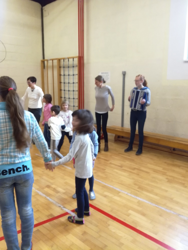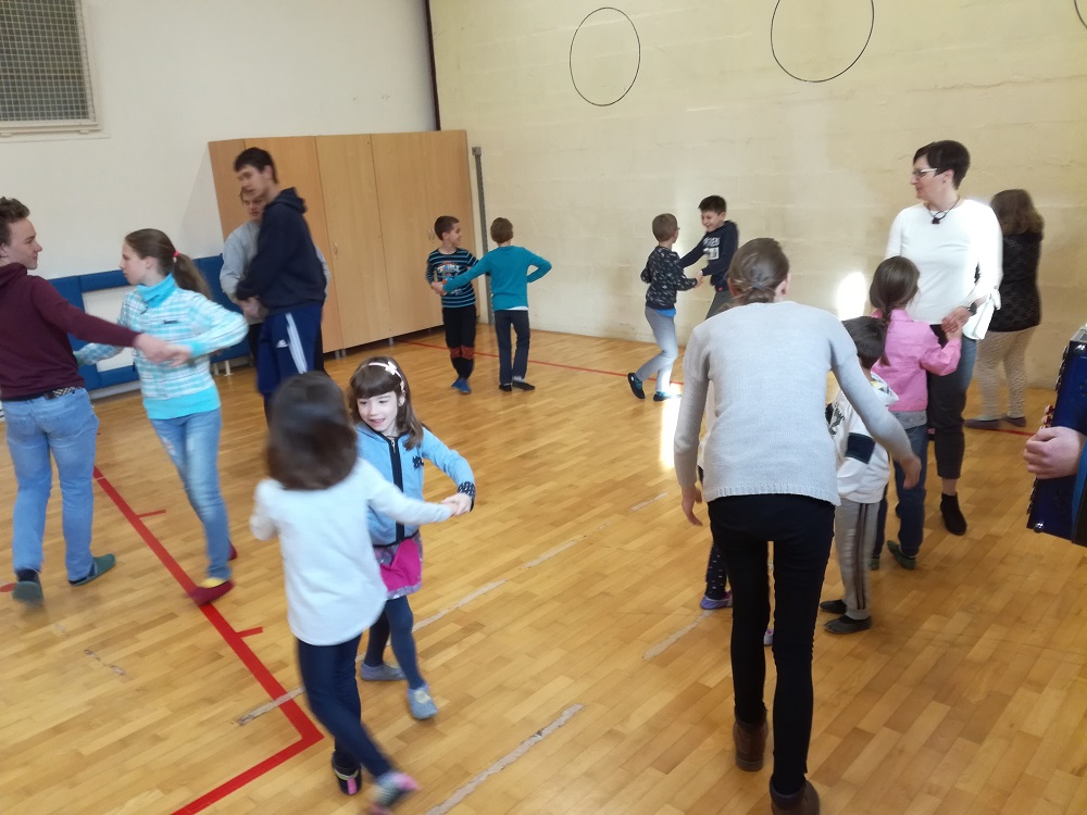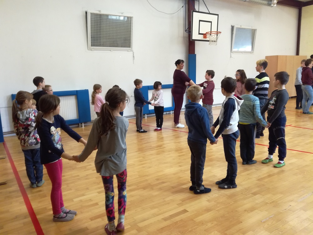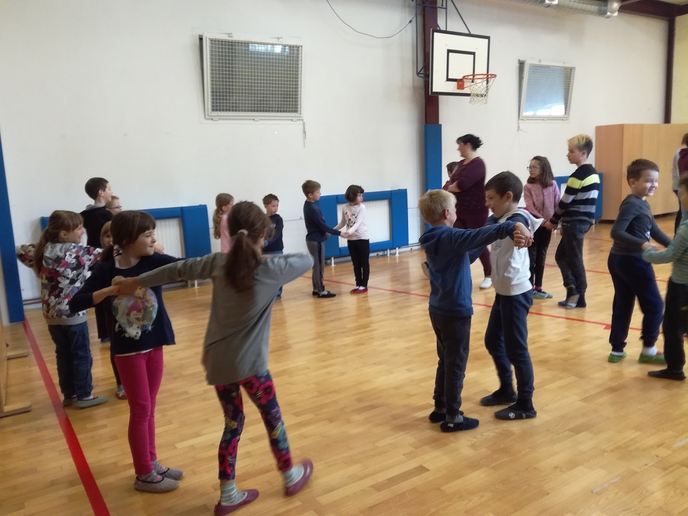 V torek, 26.3.2019 smo učenci 2.b razreda in učiteljica, zaplesali. Pa ne sami. Da zaplešemo skupaj, so nas povabili člani folklorne skupine, ki obiskujejo šolo s prilagojenim programom ter učiteljica Adrijana. Plesali smo in plesali kar celo šolsko uro. Spremljala nas je harmonikašica in ob zelo veselem vzdušju smo se naučili zaplesati kar dva ljudska plesa. Na koncu smo se še malo poigrali. Ker nas je bilo veliko, smo se razdelili v dve skupini. Poleg učiteljice Adrijane, nas je učila tudi učiteljica Svetlana. Vsem nam je najbolj ostal v spominu ljudski ples Zibenšrit in še ves dopoldan smo si popevali melodijo. V sredo pa so ga učenci pri športu zaplesali brez napake. Lepo se nam je bilo družiti z učenci s šole s prilagojenim programom. Želimo si, da bi bilo takih druženj čim več.