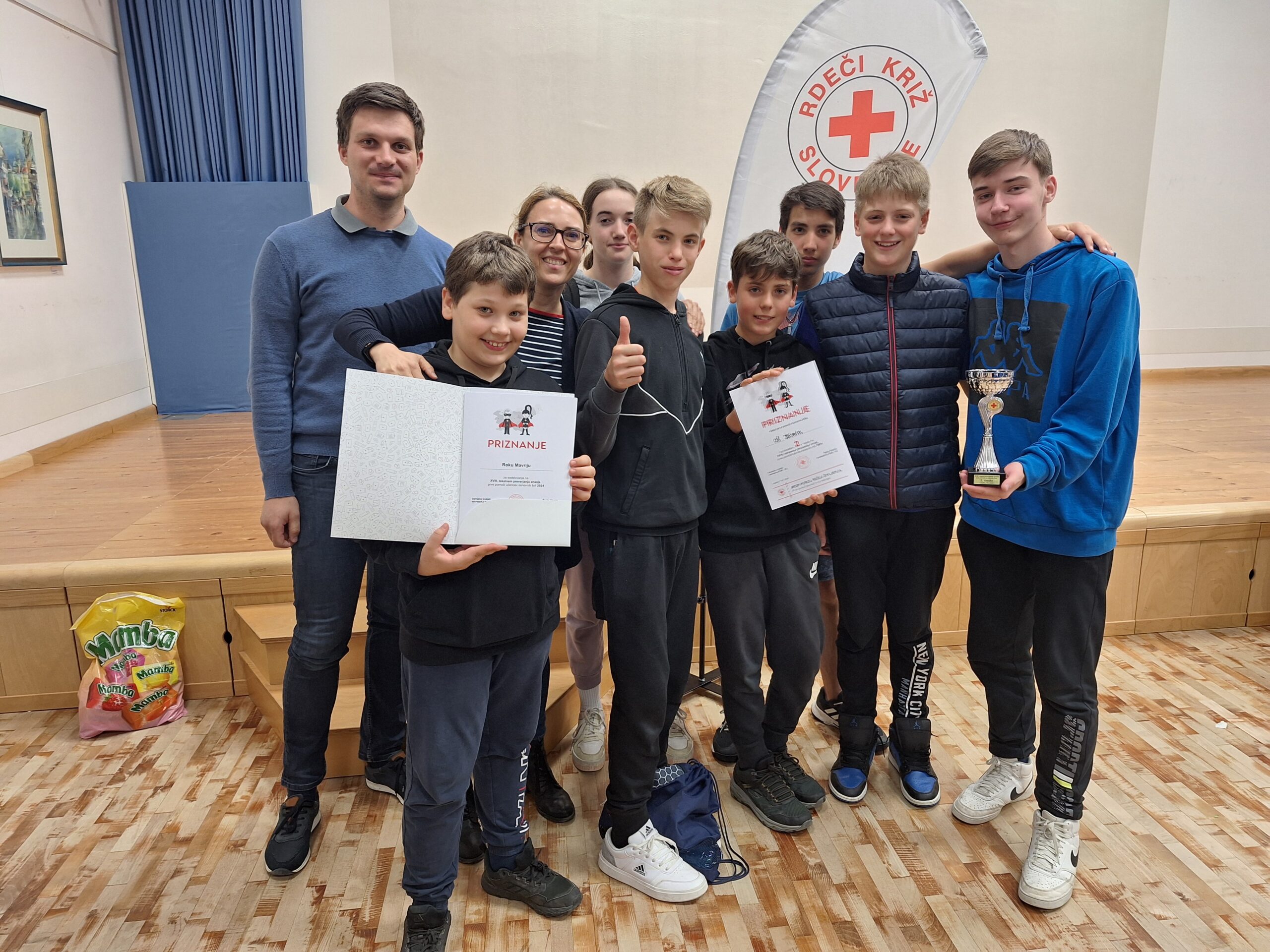 V torek, 16.4.2024, smo se udeležili regijskega tekmovanja iz prve pomoči v Logatcu. Bilo je zelo zanimivo in poučno, poškodbe pa so bile zelo dobro pripravljene. Moram pohvaliti vse v ekipi, ker so se izvrstno potrudili in smo tako dosegli 2. mesto. Za las smo zgrešili prvo mesto, saj so bile vse ekipe dobro pripravljene. Dobili smo pokal za drugo mesto in druge simbolične nagrade. Ob tem bi se zahvalil našim mentorjem Blažu Uršiču, Tjaši Costantini in Tanji Mugerli za dobro pripravo, ki nas je pripeljala do tega rezultata. Člani ekipe smo bili zelo zadovoljni z našim rezultatom in upam da se tudi vi.