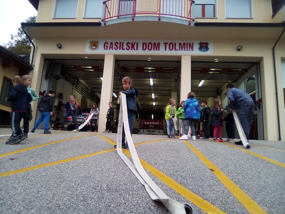 V ponedeljek smo učenci drugega razreda namenili dan gasilcem in njihovemu delu. Obiskali smo jih v gasilskem domu Tolmin, kjer so nas prijazno sprejeli. Tudi tokrat so za otroke pripravili nepozabno predstavitev. Poveljnik gasilcev, g. Miha Vencelj, je otrokom razkazal gasilsko postajo in jim razložil, v kakšnih nesrečah pomagajo, kako se odzovejo na klice, kakšno opremo imajo (uau, kako je lepo pospravljena), kdaj jo uporabijo in še veliko zanimivega. S sodelavcema Valentinom Šuligojem in Juretom Begušem so nas razdelili v manjše skupine. Tako smo si vsi od blizu lahko ogledali notranjost gasilskih vozil in opremo v njih, preizkušali smo različne vrste čelad, se naučili metati in zvijati cevi, najbolj pogumni pa so celo rezali avtomobilsko pločevino. Dan je kar švignil mimo in še veliko novega in zanimivega smo se naučili.