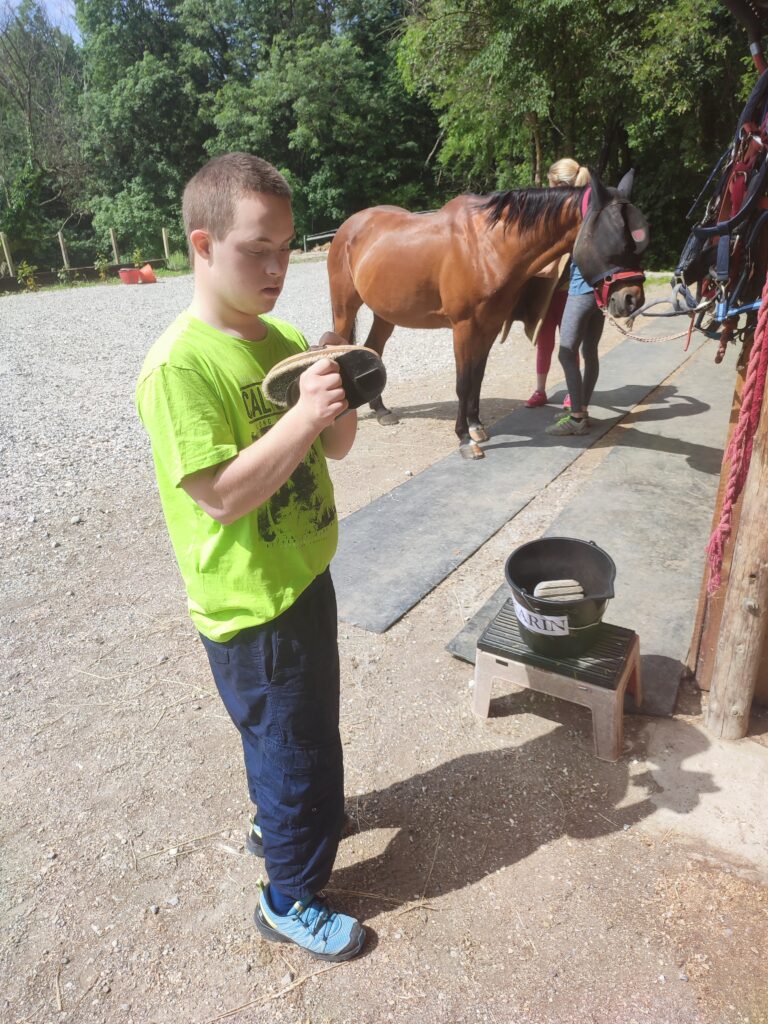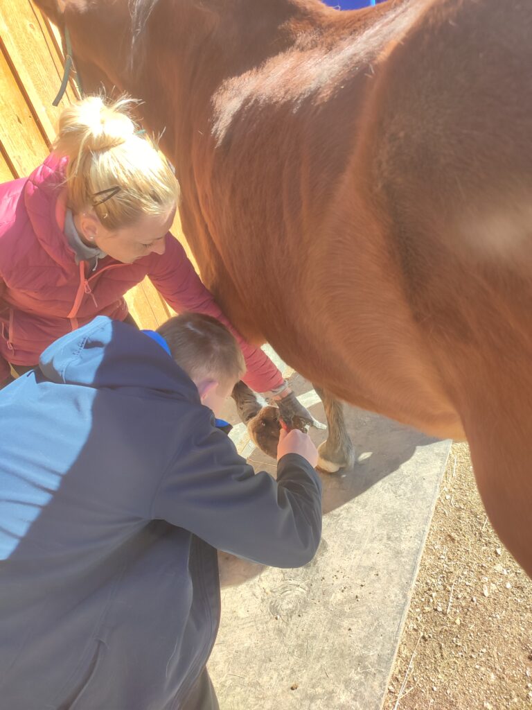 Učenci posebnega programa vzgoje in izobraževanja so v letošnjem šolskem letu, vsak torek, ko je vreme dopuščalo, obiskovali ranč Pelance. Tam nas je pričakala kobila Karin. Učenci so jo v pozdrav pobožali nato pa oskrbeli, jo skrtačili, jo osedlali in jo vodili do maneže. Učenci so izmenično jahali kobilo in pomagali pri vodenju, pri tem so zelo uživali.