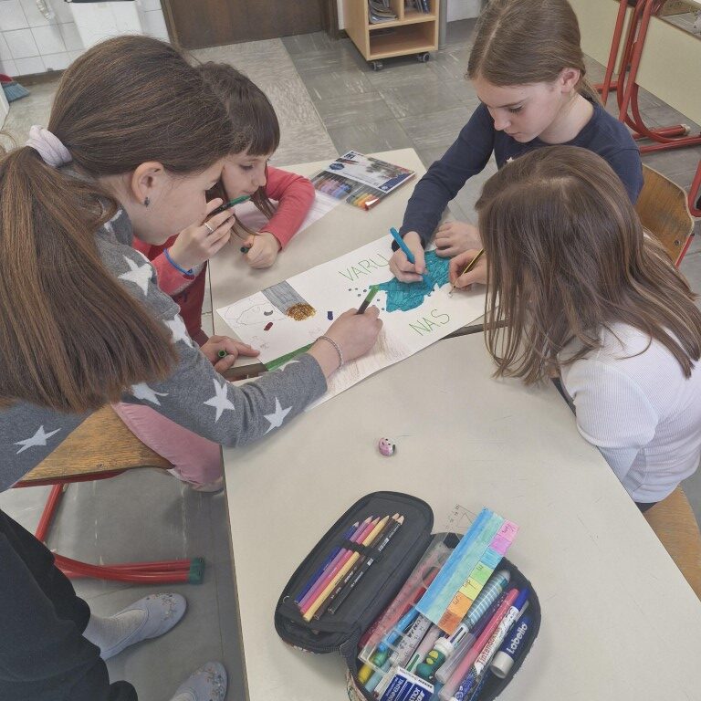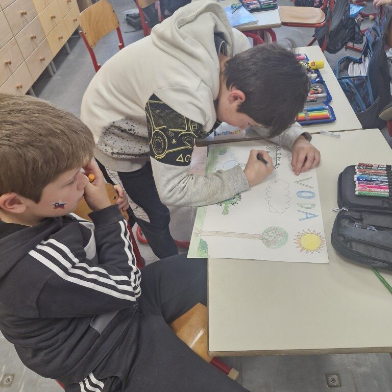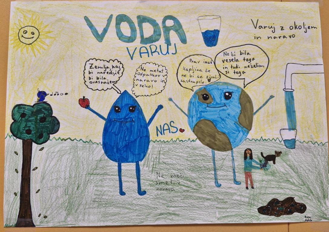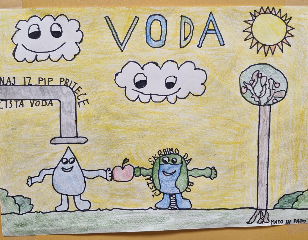 Teden smo namenili ozaveščanju o svetovni problematiki oskrbe z vodo, o problemih povezanih z oskrbo z vodo (bolezni, revščina, suša, onesnaženost, pitna voda), navajali smo se na timsko in raziskovalno delo. Poleg tega smo vključeni tudi v celoletni projekt Življenje v in ob vodi, kjer preko reševanja zabavno poučnih nalog, odkrivamo pomen ohranjanja vodnih ekosistemov.