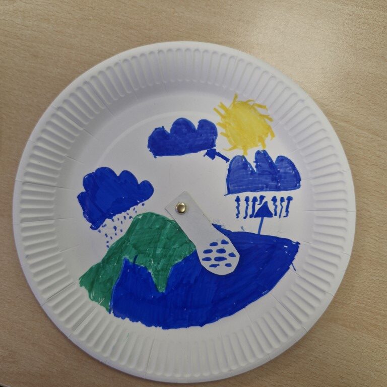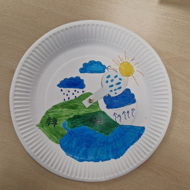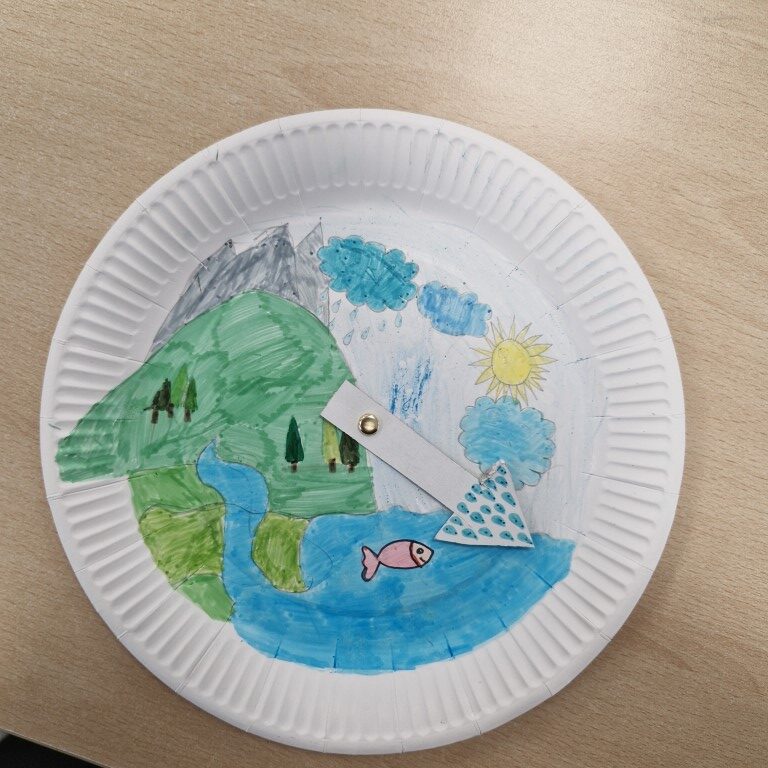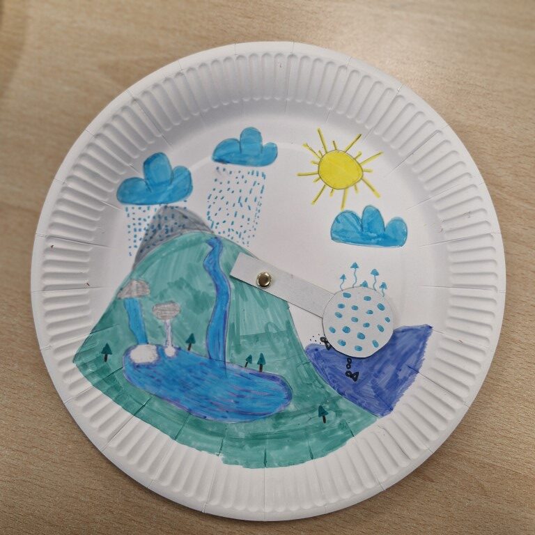 Svoje misli smo zapisali in oblikovali plakat, izdelali smo tudi vodni krog, kjer smo prikazali kroženje vode.