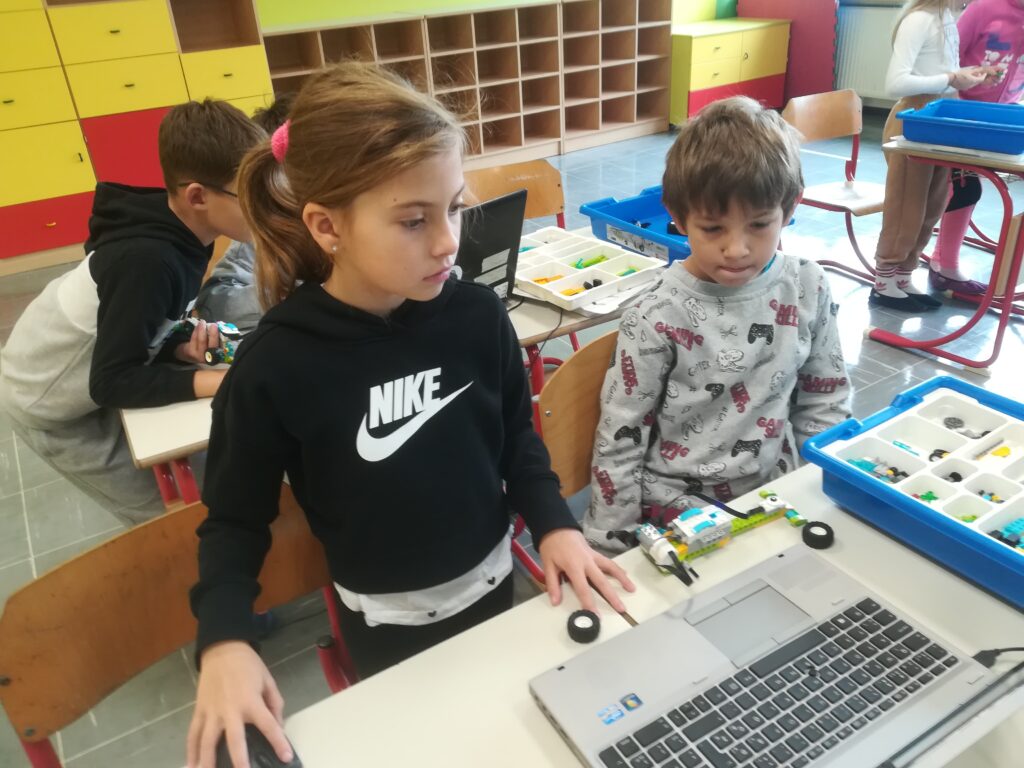 Pripravila sta dve zanimivi delavnici. Učenci so v parih po navodilih iz lego gradnikov sestavili robota in vozilo. S pomočjo računalnika so programirali ukaze, ki jih je robot oziroma avtomobil izvajal. Robota so poskušali tudi izboljšati. Izvedli so tudi tekmo v premikanju robotov in avtomobilov.
