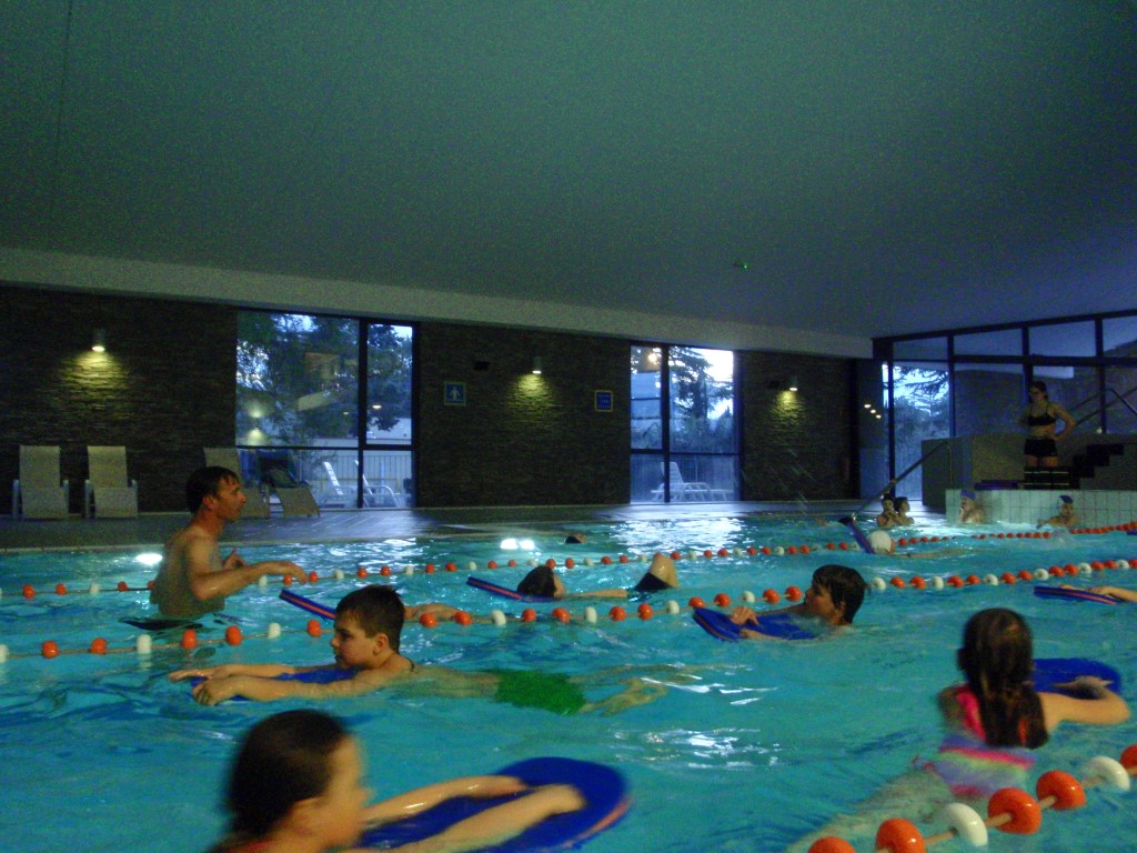 Že smo na sredini našega plavalnega tečaja. Sredino jutro in pozdrav deževnih kapelj. Po zajtrku je sledilo pospravljanje sob. Pred odhodom na plavanje smo v dnevnike napisali vtise prejšnjega dne ter se igrali igro Ime in priimek.