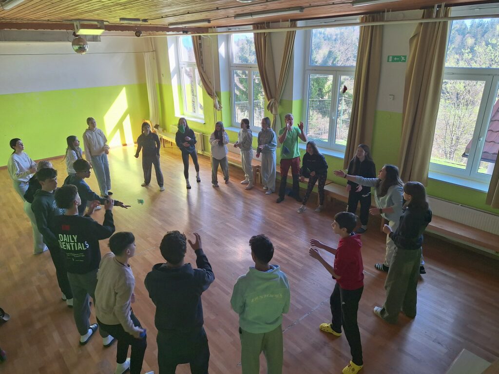 Danes smo izdelovali prave idrijske žlikrofe po originalnem receptu izpred 500 let. Najprej smo zamešali maso iz krompirja, pražene čebule, majarona, drobnjaka, soli in popra. Zamesili smo testo in ga na tanko razvaljali. Nadaljevanje je skrivnost. Preskusili smo se tudi v igrah, s katerimi smo krepili spomin, iznajdljivost in skupinsko delo. Pri sodelovanju smo učvrstili medsebojne odnose. Za kosilo smo si privoščili težko prislužene žlikrofe. Bili so nadvse slastni. Vse smo zmazali. Nato smo si odpočili. V popoldanskem času smo se odpravili na pohod na Jelenk, kjer smo občudovali oddaljene hribe. Zvečer so nas pričakale zabavne družabne igre in se ob glasbi sprostili.