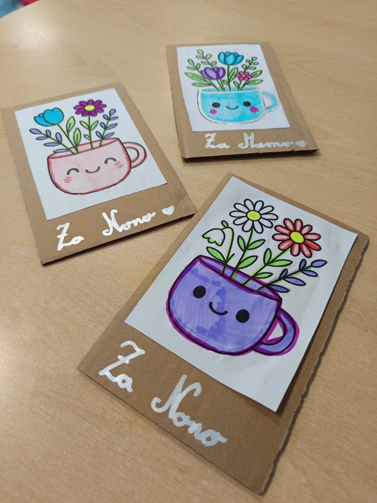 Ob koncu pouka smo odšli domov z lično narejenimi voščilnicami, ki smo jih v nedeljo lahko podarili pomembnim ženskam v našem življenju. Čisto vse so bile majhne pozornosti vesele.