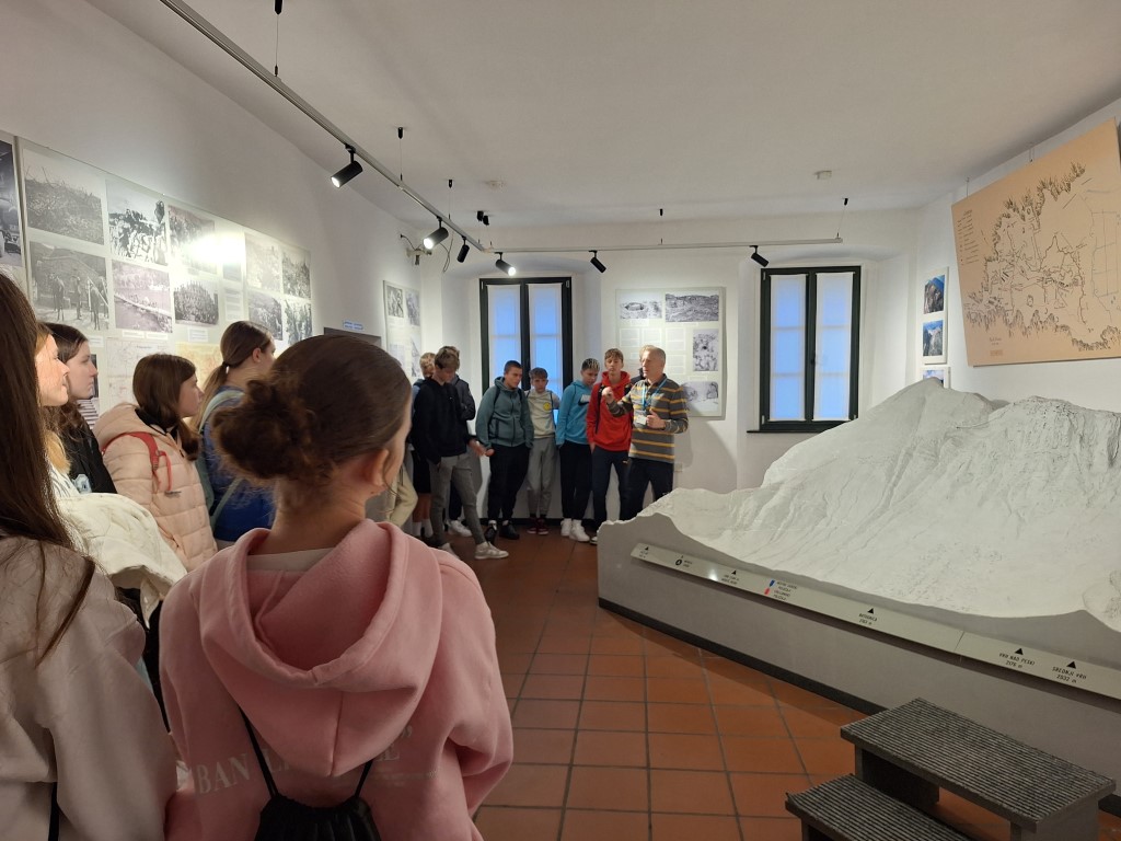 24. oktobra, dan znamenite 12. soške ofenzive, smo z učenci 9. razreda obiskali Kobariški muzej. Ogledali smo so si tematske sobe, ki predstavljajo različne vidike fronte. Zanimiv je prikaz poteka 12. soške ofenzive. Obiskali smo tudi Muzej na prostem Kolovrat. Sprehodili smo se po jarkih in videli življene vojakov na fronti.