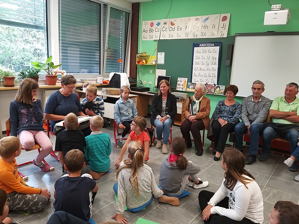 Učenci tretjih razredov so imeli v ponedeljek, 23.9. kulturni dan- Bevkov dan. Dan je bil zanimiv in pester, saj so učenci na ta dan obiskali knjižnico Cirila Kosmača, kjer so tretješolcem predstavili akcijo Moja knjižnica. V okviru projekta Beremo skupaj pa so bili v šolo povabljeni tudi dedki in babice. V 3.a razred je prišlo kar 21 dedkov in babic. Učencem, svojim vnukom in vnukinjam so prebrali pravljico o Peteru Klepcu. Izkazalo se je, da so krasni bralci. Nekateri od njih so v svojem otroštvu celo srečali našega pisatelja Franceta Bevka. Druženje je bilo prisrčno, zadovoljni so bili otroci, stari starši in učiteljica. Še jih bomo povabili, ker so krasni poslušalci, pripovedovalci in je druženje z njimi zabavno.