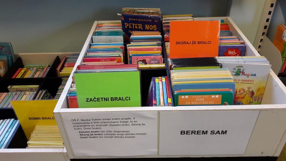 Gradiva so pripravljena po stopnjah, najdete jih v zaboju BEREM SAM: