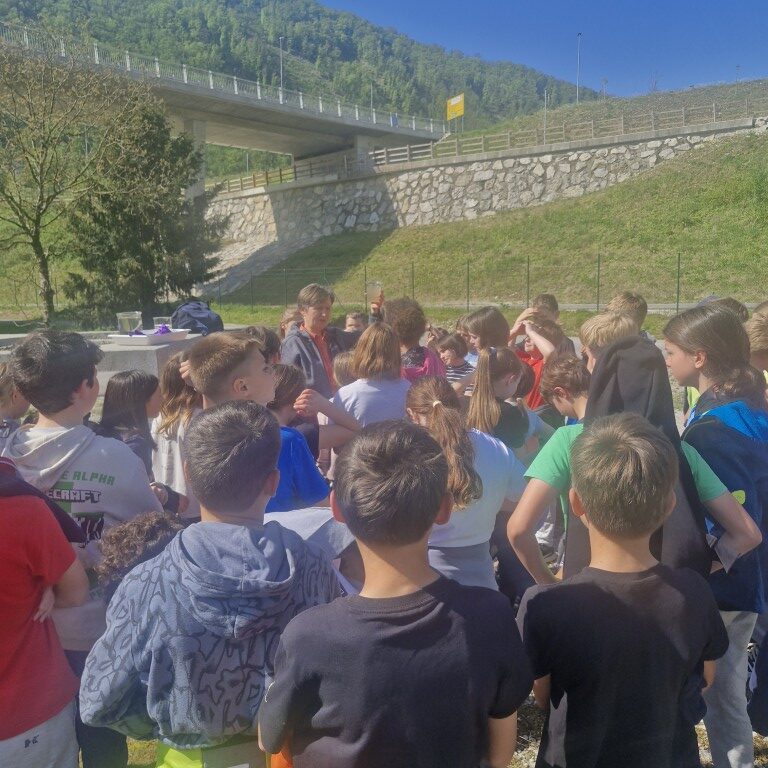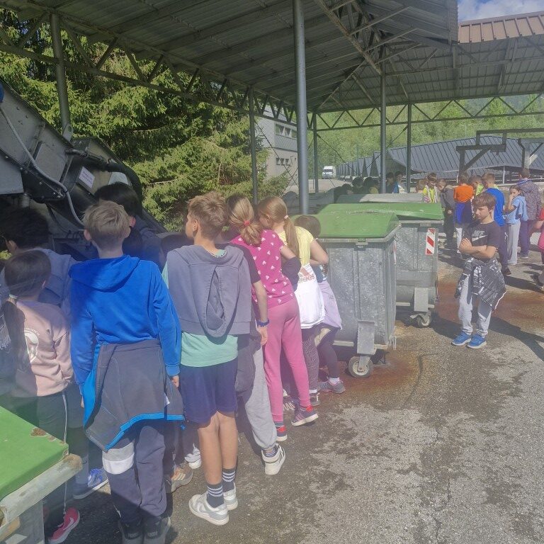 V petek 17. 4. smo si ogledali in ovohali čistilno napravo Tolmin, ki oskrbuje Poljubinj, Zatolmin, Tolmin in del Žabč. Gospa Tončka nam je razkazala čistilno napravo in nam razložila sistem čiščenja odpadne vode, ki poteka po postopkih v različnih bazenih. Na začetku odpadna voda preko cevi priteče v napravo z imenom »grablje«, ki iz vode ločijo delce hrane in kose plastike. Voda nato skozi cevi odteče v bazen v katerem so mikroorganizmi, ki se prehranjujejo z človeškim blatom in razjedajo umazanijo. V okroglem bazenu se mikroorganizmi ločujejo od vode tako, da se posedajo na dno bazena. Nato vodo prestavijo še v en bazen kjer se voda znebi umazanije, a še vedno ni pitna. Kasneje vodo spustijo v reko Tolminko.