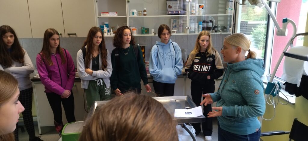 V torek, 4. 10. 2022, so imeli učenci 9. razreda tehniški dan spoznavanja poklicev na delovnem mestu. Učenci so se, glede na interes, razporedili v skupine. Spoznali so veliko poklicev: frizerja, kozmetičnega tehnika, prodajalca, vzgojitelja, delovnega terapevta, maserja, veterinarja, novinarja, medijskega tehnika, fotografa, zdravstvenega tehnika, zdravnika, zobnega tehnika, zobno asistentko, reševalca, babico, fizioterapevta, mehatronik operaterja, strojnega tehnika, računovodjo idr.