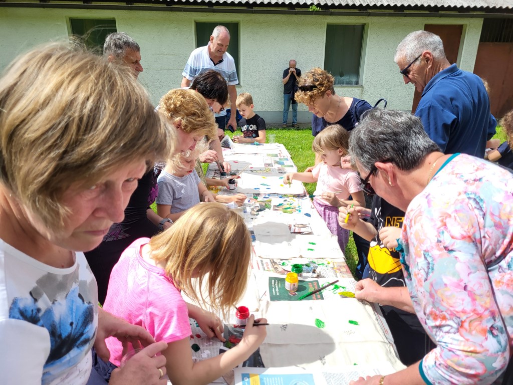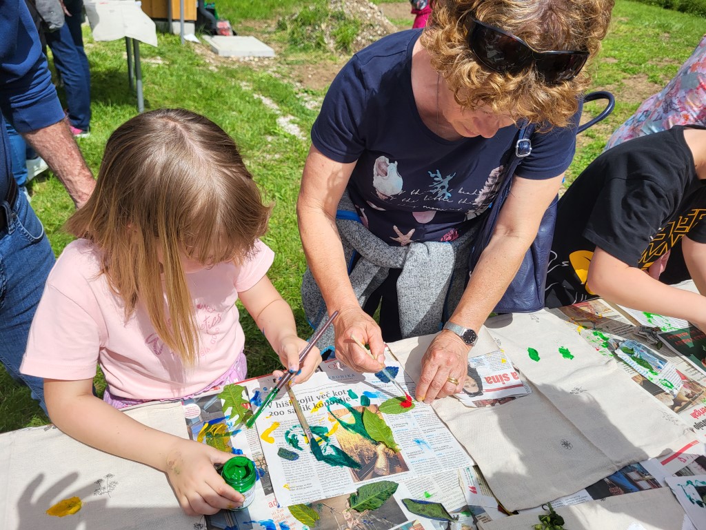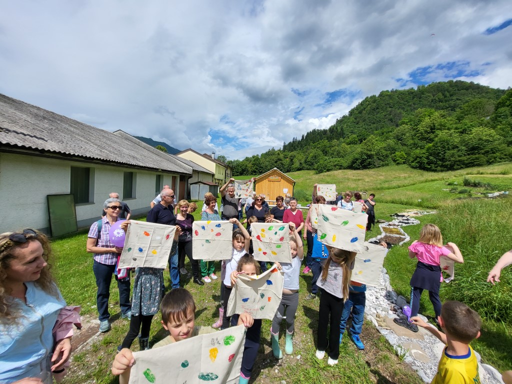 23. maj je mednarodni dan Učilnic na prostem – Outdoor classroom day. Učenci iz 1.B razreda so v sodelovanju s Patricijo Rejec (PRC Tolmin) ta dan obeležili prav na poseben način. V šolo so povabili stare starše in skupaj z njimi odšli k učnemu vrtu Na Logu. Kolona je bila tokrat zares dolga, saj so se vabilu odzvali skoraj vsi. Izvedli so dve delavnici, pomagali so seveda nonoti, none, babice in dedki. Skupaj so naredili ptičje strašilo, ki bo varovalo jagode, ribez in ostale pridelke pred nezaželenimi obiskovalci. V drugi delavnici pa so izdelali lepe prtičke z odtisi različnih listov, ki so jih nabrali na vrtu. Učenci so starim staršem pokazali gredico, kjer že uspeva zelenjava. Nabrali in pokusili so prvi grah. Druženje je potekalo v lepem vremenu in veselem razpoloženju.