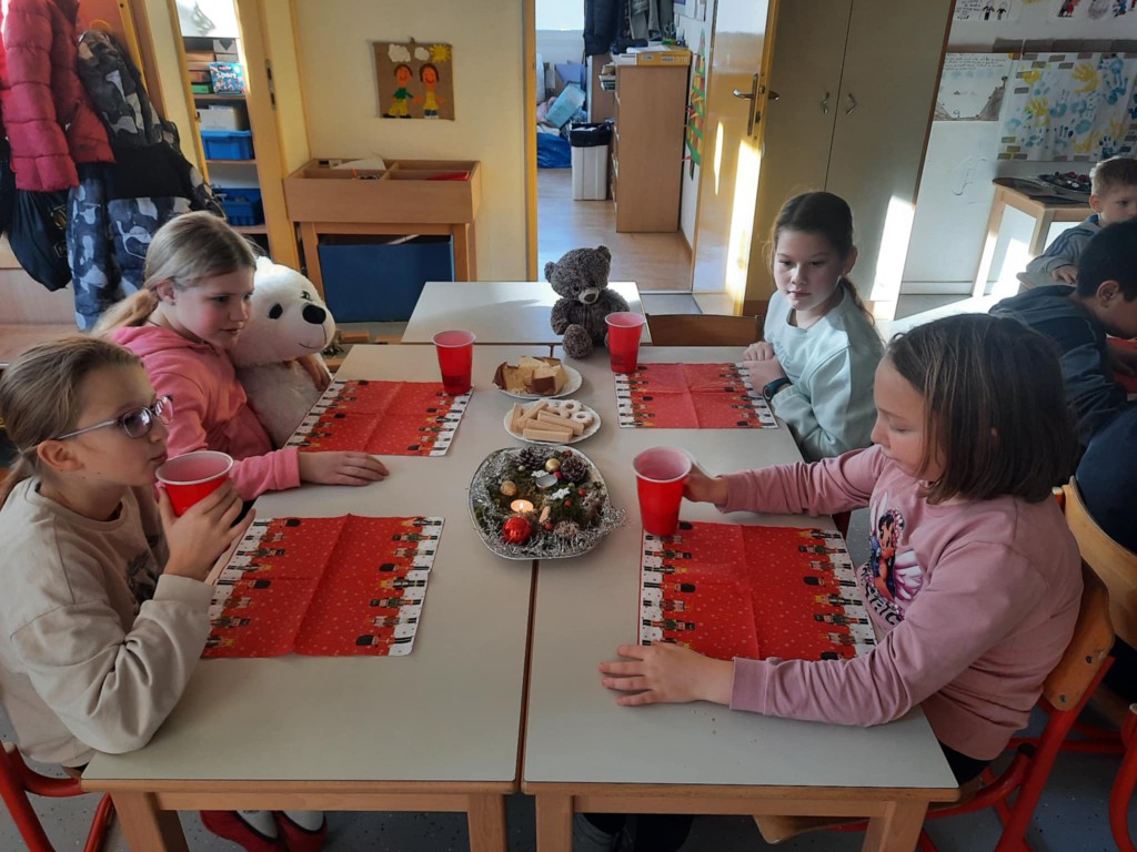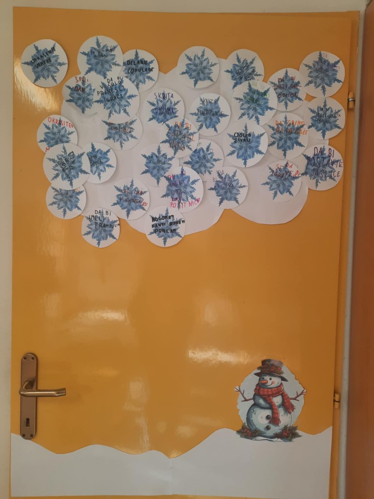Nekaj želja se nam je uresničilo: imeli smo daljše odmore, več smo se lahko igrali in ustvarjali, imeli smo pravo čajanko z našimi prijatelji, ki smo jih lahko prinesli od doma, izdelali smo škatlice in pekli piškote. Okrasili smo lahko šolo, obiskal nas je madagaskarski ježek, imeli smo več obiskov, ki so nam polepšali s presenečenji naš pouk, najbolj pa smo se razveselili presenečenja, ki nam ga je pustil Miklavž in seveda obisk dedka Mraza.