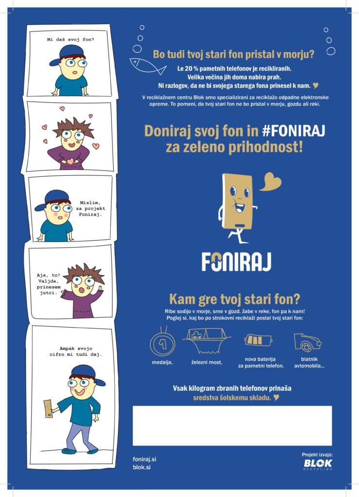 Odločili smo se, da bomo sodelovali v projektu #Foniraj, podjetja Blok d.o.o., saj želimo tudi na naši šoli čim bolj ozaveščati o trajnostnem ravnanju z odpadki in razširiti zavedanje o pomenu reciklaže odpadne električne in elektronske opreme.