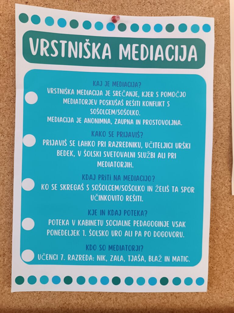 Ko smo imeli pouk, smo primerjali naše izkušnje z mediacijo, se igrali igrice in spoznavali med seboj. Dali smo si tudi ideje, kako bomo naprej sodelovali.