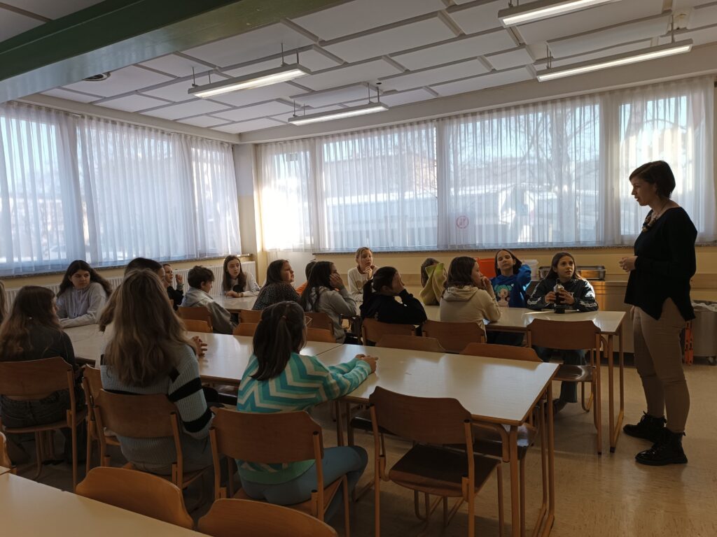 V petek, 26. 1. 2024, smo z učenci in učenkami, ki obiskujejo krožek vrstniške mediacije odpravili na OŠ Franceta Bevka v Ljubljani, kjer se nekaj učencev, tako kot mi, usposablja za vrstniške mediatorje. Namen ekskurzije je bil druženje učencev in učiteljic mediatork, medsebojno spoznavanje, izmenjava dosedanjih izkušenj ter pogovor o možnostih sodelovanja in povezovanja med šolama v prihodnosti.