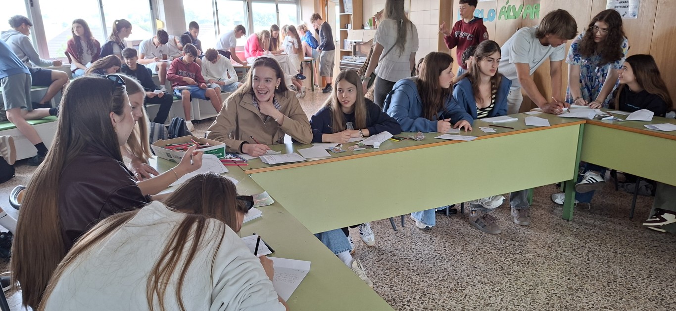 Današnji dan smo ponovno preživeli na šoli. Šolske prostore smo že dobro poznali, pa tudi druženje s španskimi vrstniki je vedno bolj sproščeno. K temu je pripomogla prva dejavnost o čuječnosti, kjer smo se naučili pravilnega dihanja, podelili pozitivne misli drug o drugem in jo zaključili s kratko meditacijo.