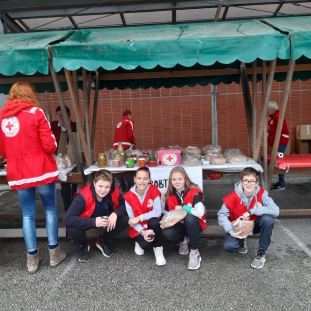 Območno združenje Rdečega križa Tolmin in naša šola sta ponovno združila moči. Tudi letos smo, že sedmič, izvedli humanitarno akcijo DROBTINICA. Akcija je bila izvedena ob svetovnem dnevu hrane, potekala pa je minulo soboto, 19. 10. 2019, pred mercatorjem na Logu.