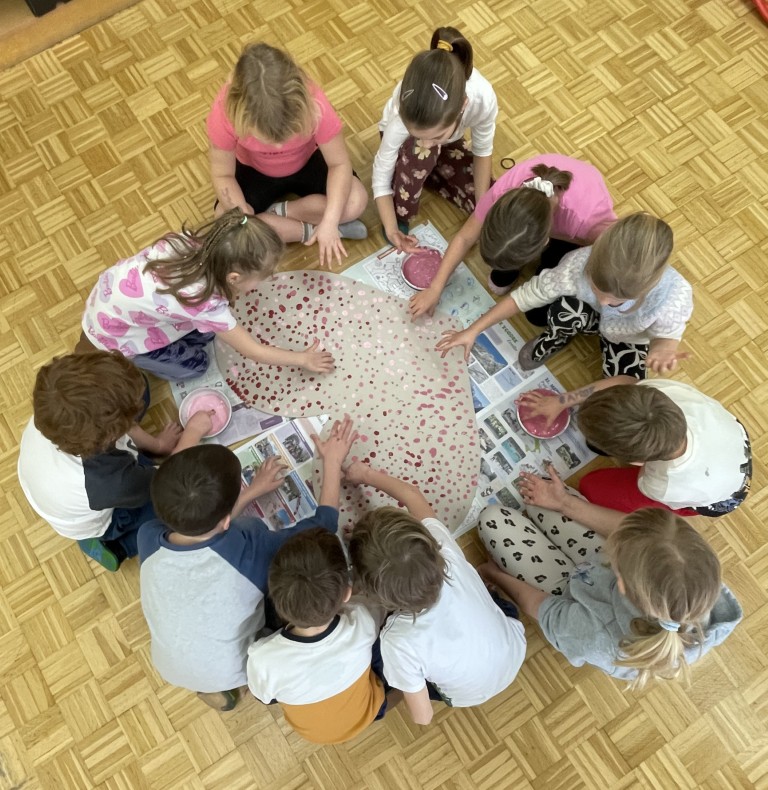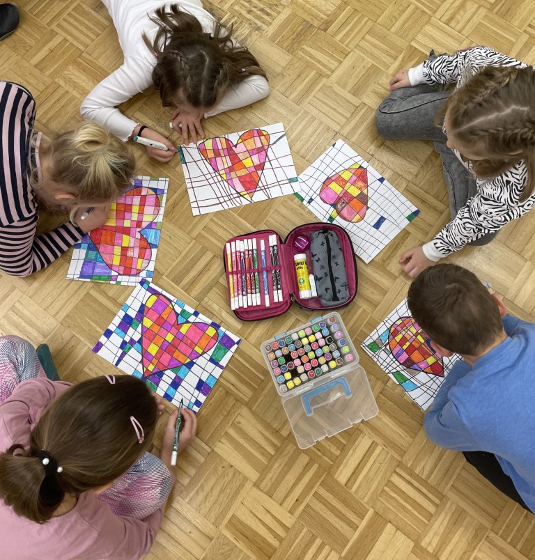 Otroci so s prstnimi odtisi ustvarili drevo ljubezni, iz njegovih vej pa so poleteli ptički – vsak s svojim sporočilom. Skupaj so pokazali, da ljubezen raste iz majhnih dejanj in da se najlepše razširi, ko jo delimo naprej.