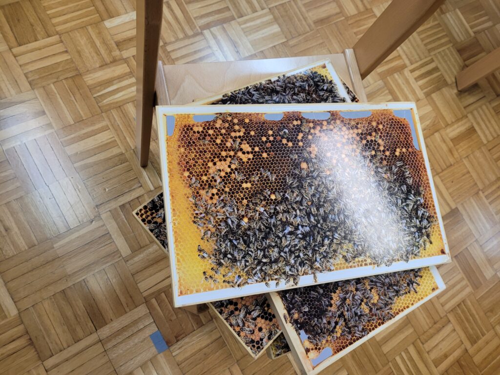 Obiskala nas je čebelarka Marija iz čebelarstva LUCKA iz Sužida. Prepričani smo bili, da o čebelah vemo skoraj vse. Ampak smo se zmotili. Izvedeli smo veliko novih stvari, ki so nas prav prijetno presenetile. Da imajo čebele 3 oči, da živijo samo okli 40 dni, da imajo 4 krila, in še in še. Ko nam je predstavila vse te zanimivosti, smo začeli s pokušino različnih medov.
