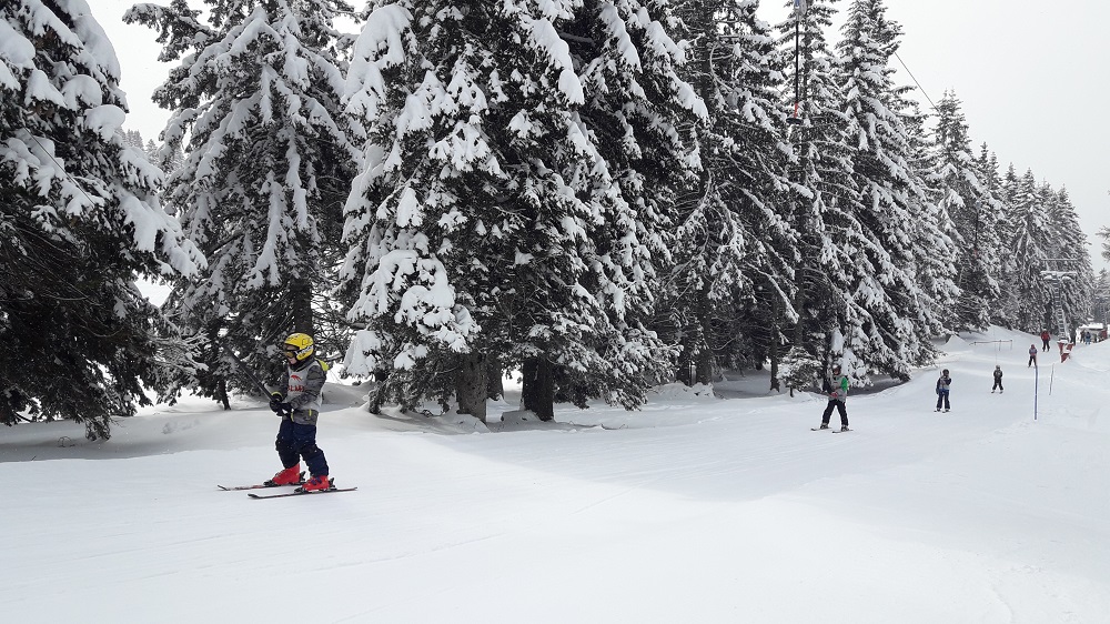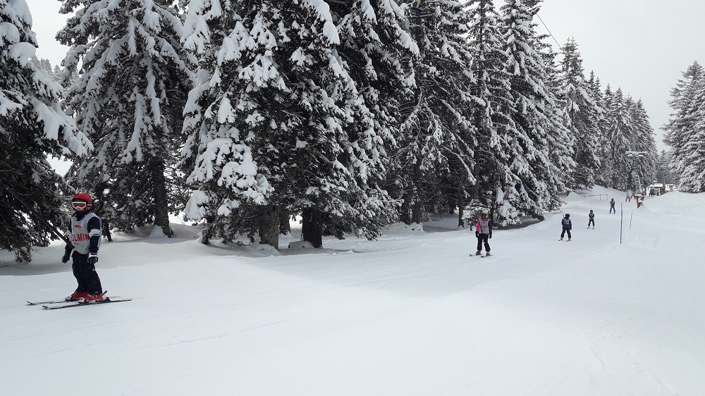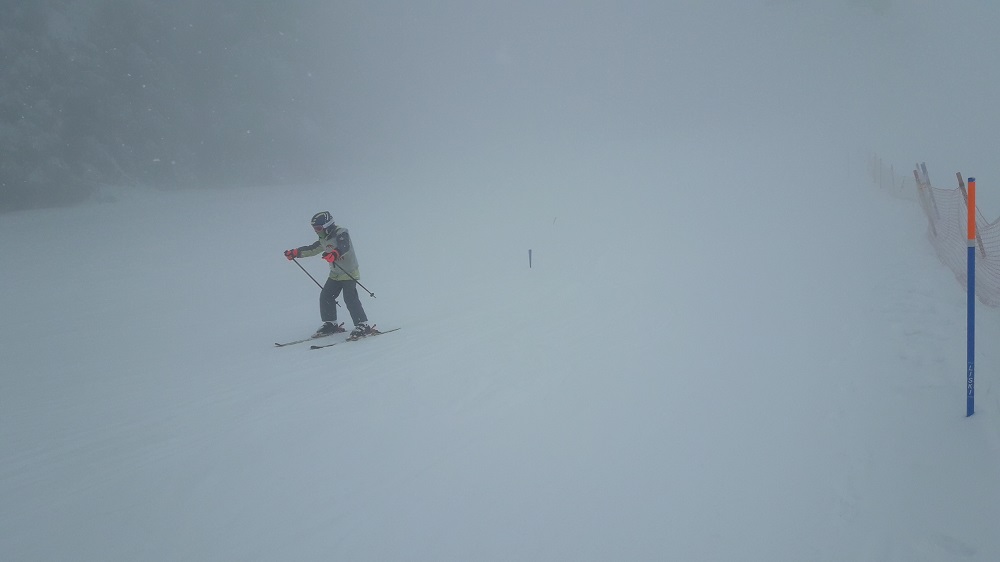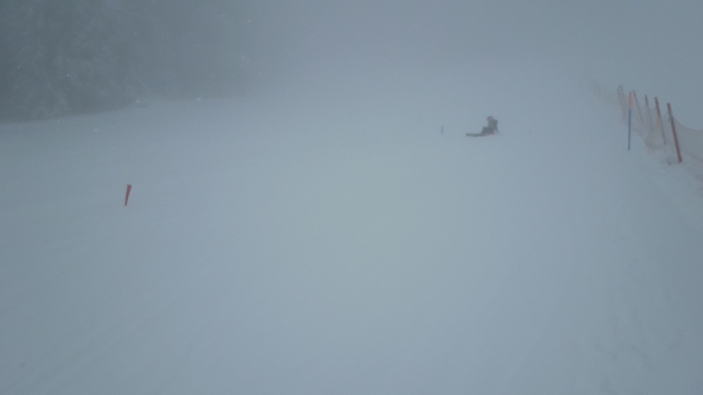 Za zajtrk sem imela kosmiče, kruh z nutelo in druge namaze. Zajtrk je bil fin. Ko smo se odpravili na smučanje, je zunaj padal sneg in bila je megla. Pred začetkom smučanja smo delali vaje za ogrevanje. Po malici smo imeli tekmovanje. Upala sem, da bom dobra. Po tekmi smo še malo smučali zadenjsko in po eni nogi. Bila je megla in zlo mraz. Komaj čakam na rezultate tekme in na nočni žur. Zabavno bo. (Jana)