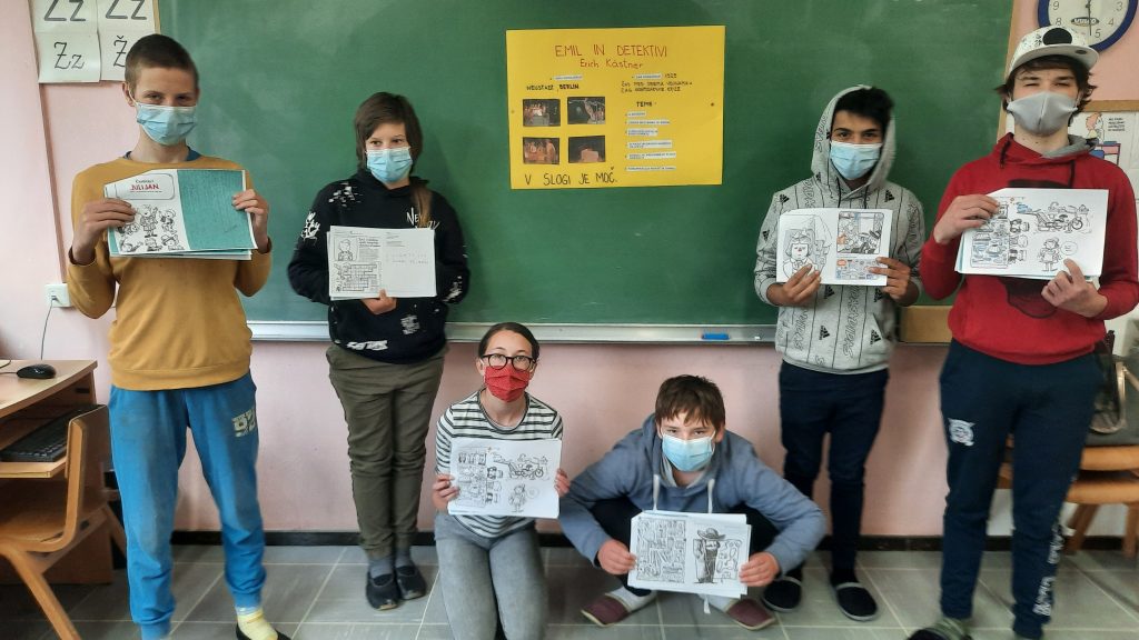 6. in 7. razred smo si po kratkem uvodu predstavo najprej pogledali, potem pa izvajali različne dejavnosti. Pogovorili smo se o pisatelju, kraju in času dogajanja in različnih temah, ki so se zvrstile v predstavi: o revščini, odnosu med mamo in sinom, prijateljstvu in sodelovanju, o kraji, o komunikaciji nekoč in danes in še nekaterih drugih. Nato smo vadili v detektivski vadnici in reševali detektivski test, ter vsi pridobili naziv – detektivski vajenec 1. reda.