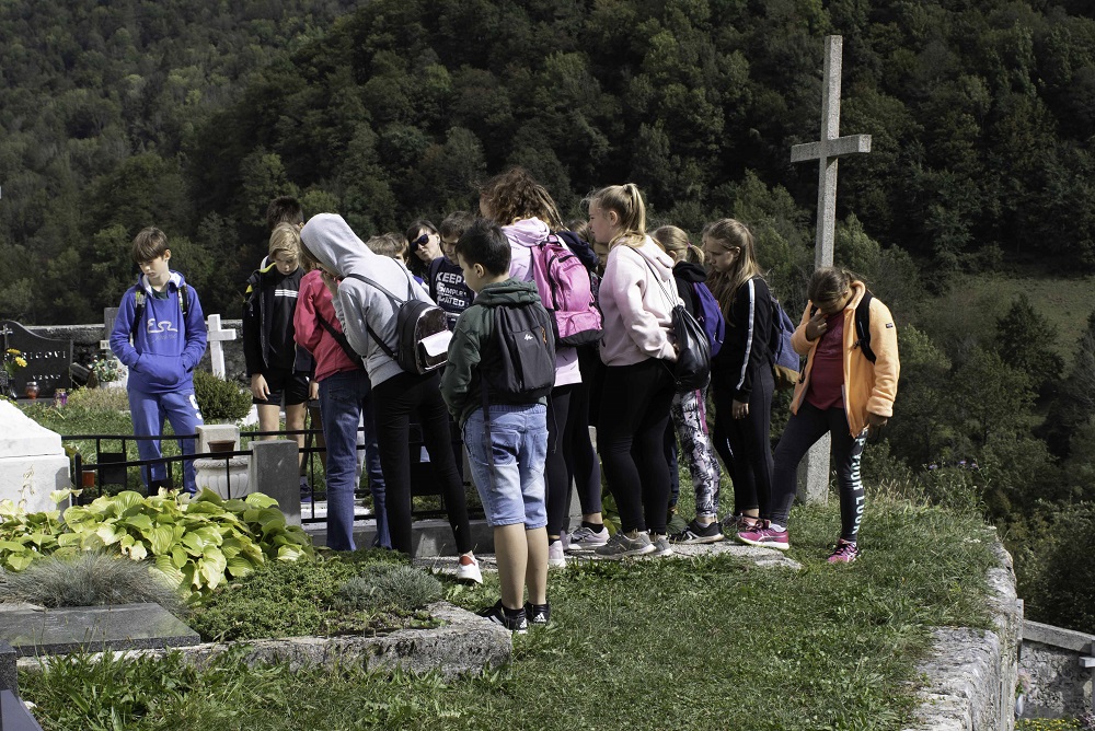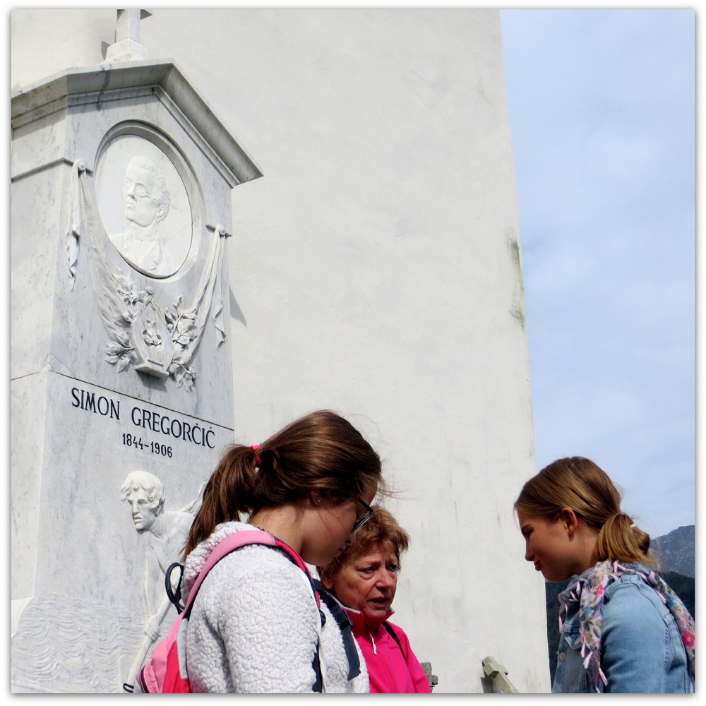 Pot nas je v petek, 20. 9. 2019, vodila v Gregorčičev planinski raj. Sedmi razredi smo obiskali rojstno hišo Simona Gregorčiča na Vrsnem, kjer smo izvedeli, da se je rodil na hišnem pragu, kar je pomenilo, da mu je namenjena pot v svet. Res je zaradi šolanja že zgodaj zapustil domačo hišo, planine in »črede očetove«, po čemer je hrepenel vse svoje življenje.