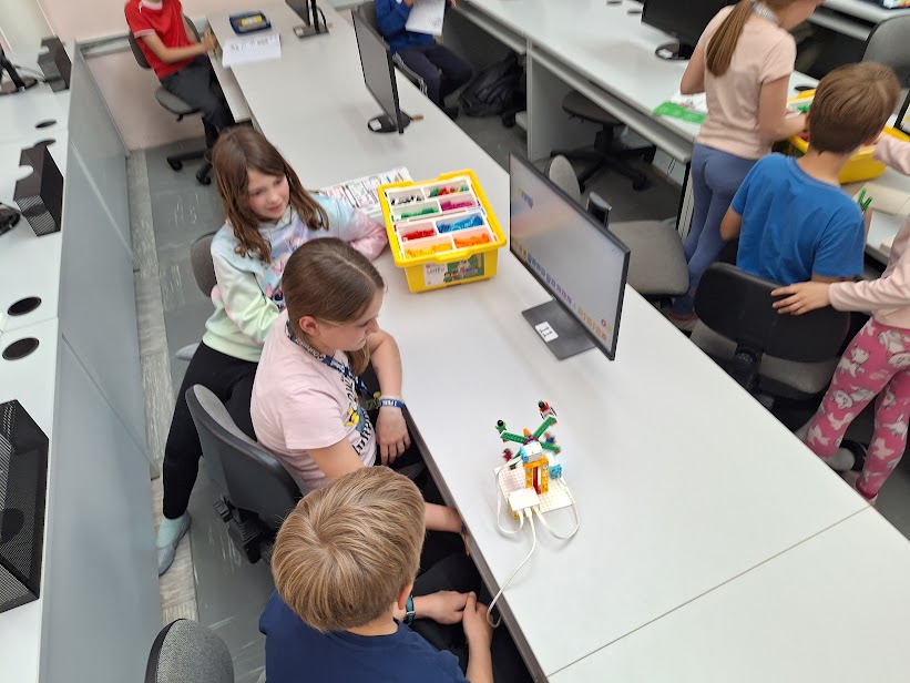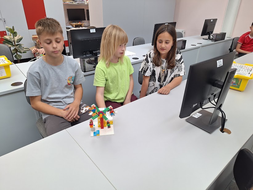 Računalnica se je spremenila v pravi raziskovalni laboratorij. Otroci so se z veliko zavzetostjo lotili sestavljanja po načrtih, ki so jih spremljali kar na računalniških zaslonih. Izbira modelov je bila pestra, od vrtečih se vrtiljakov in helikopterjev do drznih ziplajnov.