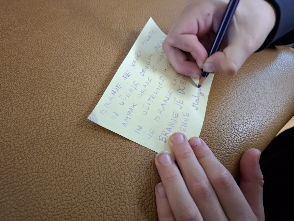 Vlada Republike Slovenije je na predlog Ministrstva za kulturo razglasila 5. marec za nacionalni dan branja v Republiki Sloveniji. Na PŠ Volče smo ta dan obeležili z branjem, izkustveno delavnico in razmišljanjem o branju. Učenci so najprej izkusili svet slepih, potem pa prisluhnili zgodbi o slepem dečku. Zabavne dogodivščine slepega dečka bodo učenci poslušali še cel mesec marec. Za zaključek so o branju razmišljali tudi učenci. Njihova razmišljanja si lahko preberete spodaj.