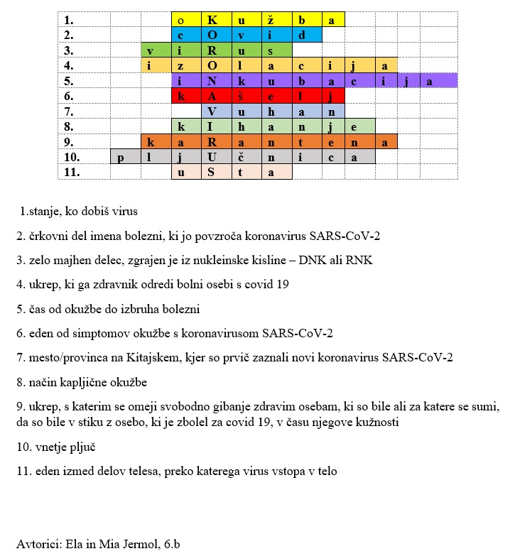 Teoretični del je bil podoben, kot pri učencih osmega in devetega razreda. Svoje znanje so preizkusili v korona kvizu in izdelali so korona križanko z geslom: koronavirus.