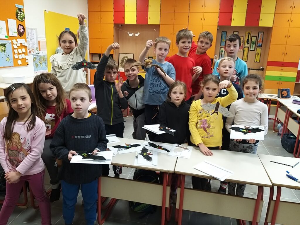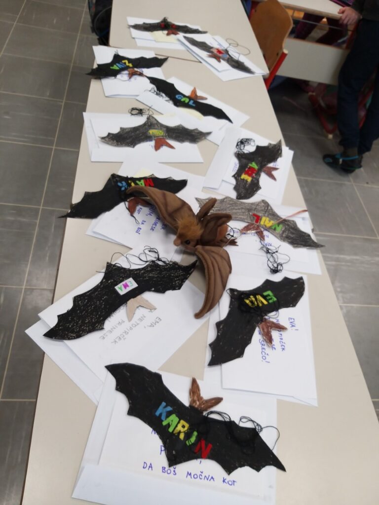 Netopirje smo izdelovali v dvojicah in bili smo veseli, da bomo bolne otroke vsaj za nekaj trenutkov osrečili in razvedrili. Pa oglejte si, kaj je nastalo.