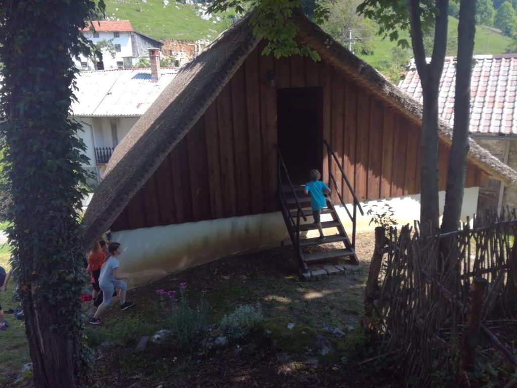 Hiša je grajena z lokalnim kamnom in prekrita s slamo. Za hišo pa je z leso ograjen zeliščni vrt. Na podstrešju hiše so razstavljene Krivopete, očarala nas je tudi pripoved o njih.