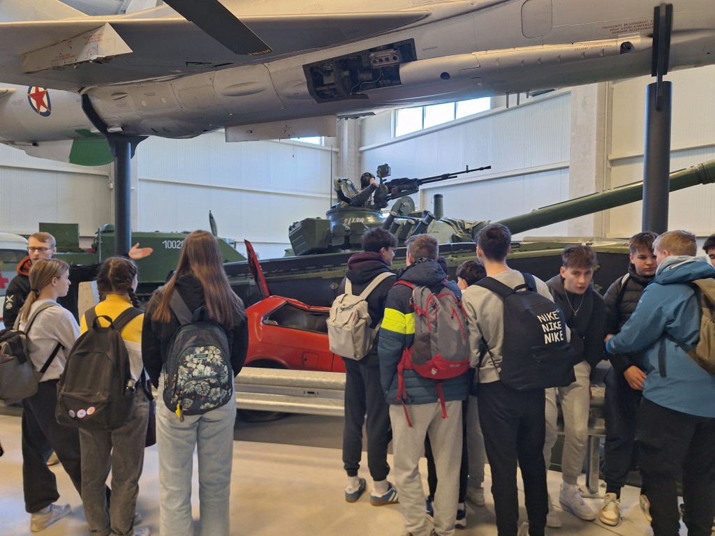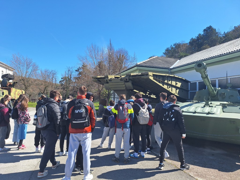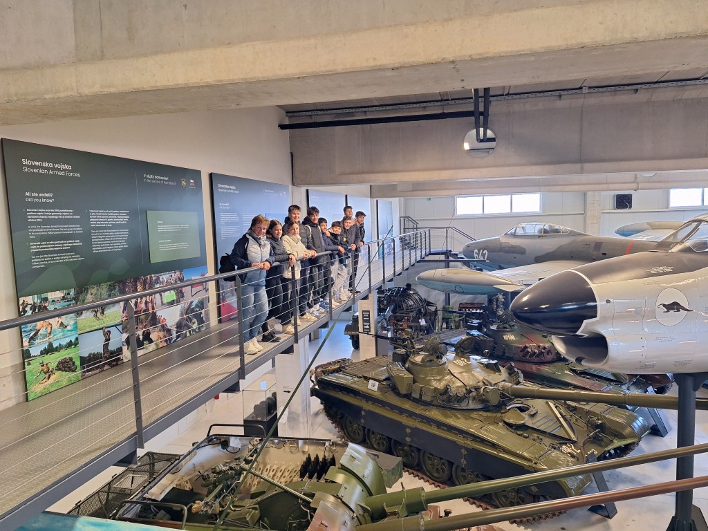 Učenci 9. razreda so v ponedeljek, 7. 4. 2025, obiskali Park vojaške zgodovine v Pivki. Spoznali so zgodovino 2. svetovne vojne in povojnega časa. Ogledali so si različno vojaško orožje in vozila. Spustili so se tudi v podmornico. Na koncu so si ogledali še film o osamosvojitveni vojni za Slovenijo leta 1991.