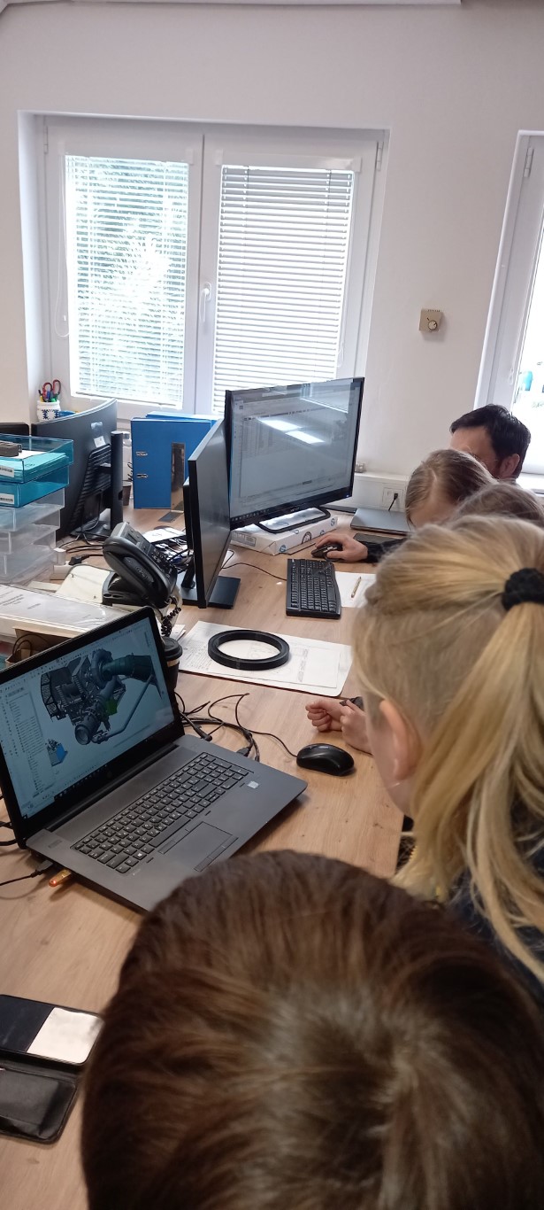 V nadstropju so nas navdušili številni računalniki in 3-d tiskalnik. Imeli smo priložnost pogovarjati se v angleškem jeziku, saj v tem podjetju dela tudi gospod iz Rusije. Gospa Katja nam je povedala, da njihove stroje prodajajo po širnem svetu.