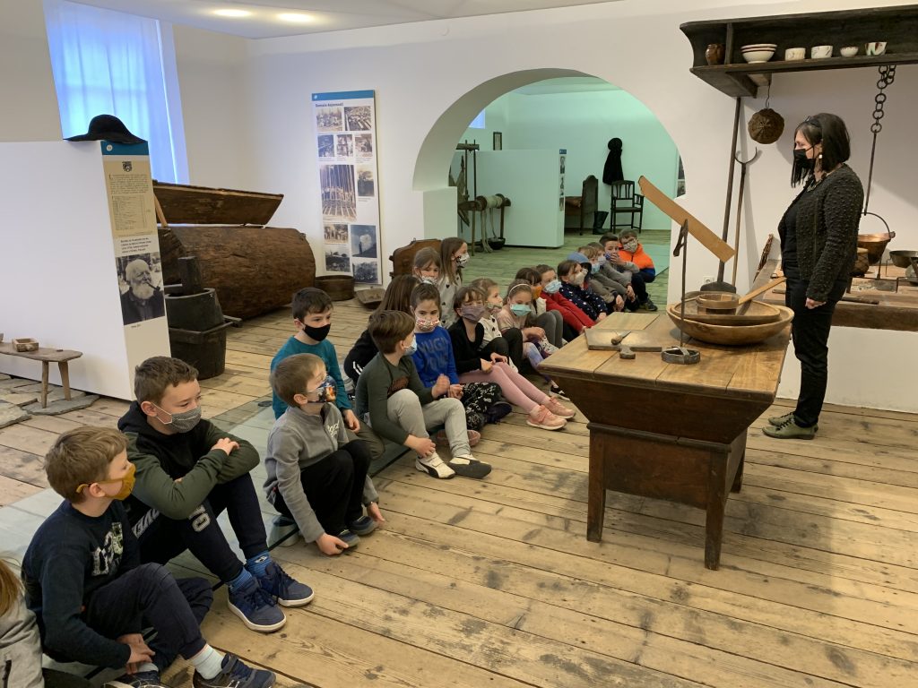 V torek, 9.3.2021, smo učenci 2.a razreda odšli v muzej, kjer nam je kustosinja Karla predstavila kuhinjo nekoč. Ste vedeli, da so včasih kuhali na ognjišču? Ste že slišali, da so vsi člani družine jedli iz ene sklede? No, slišali smo še veliko novega in zanimivega.