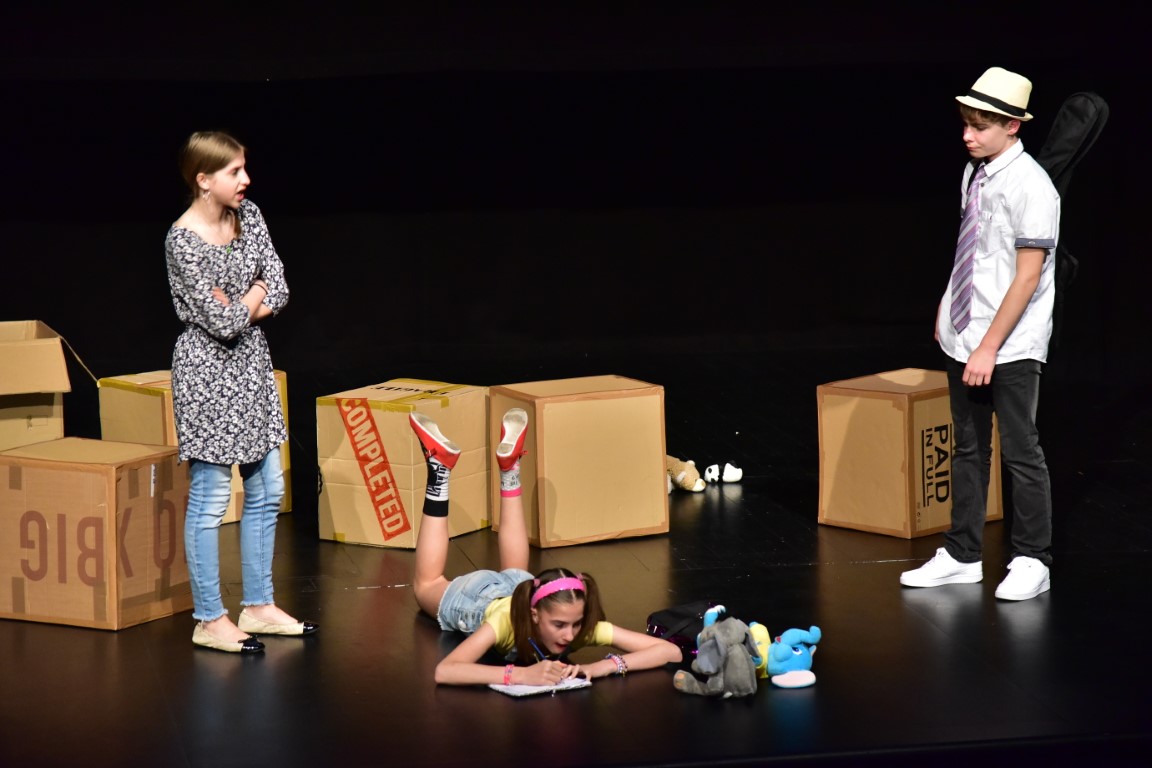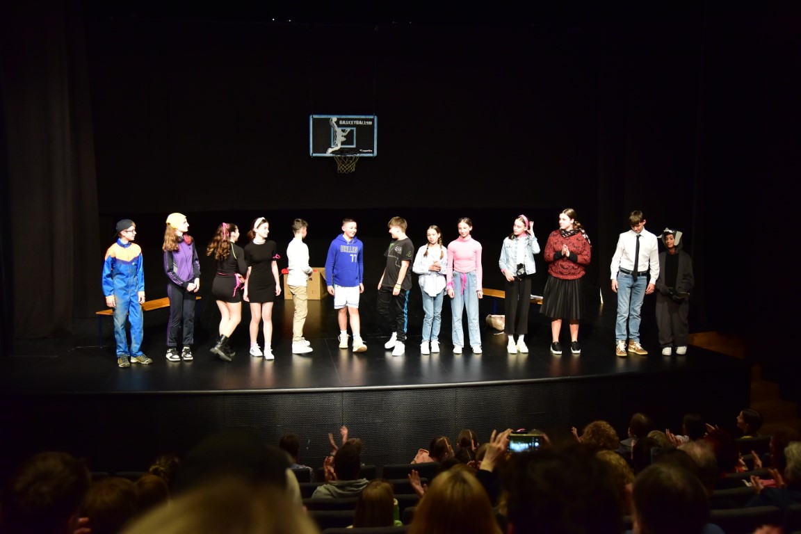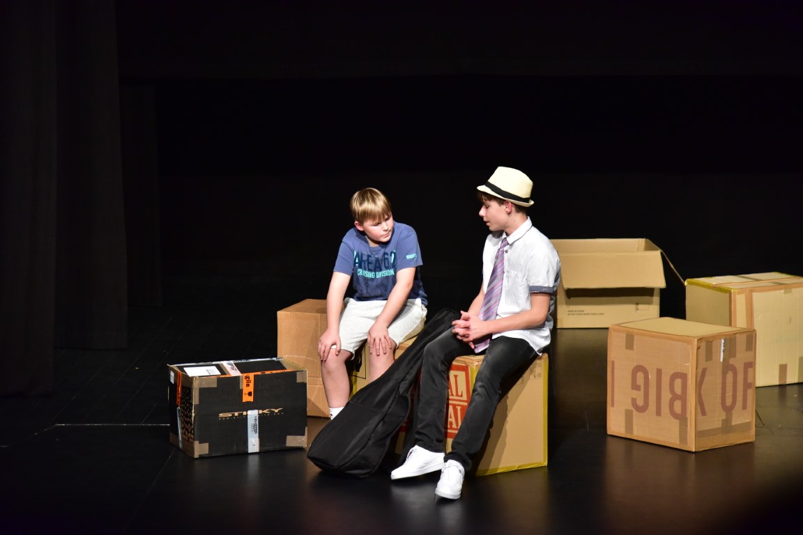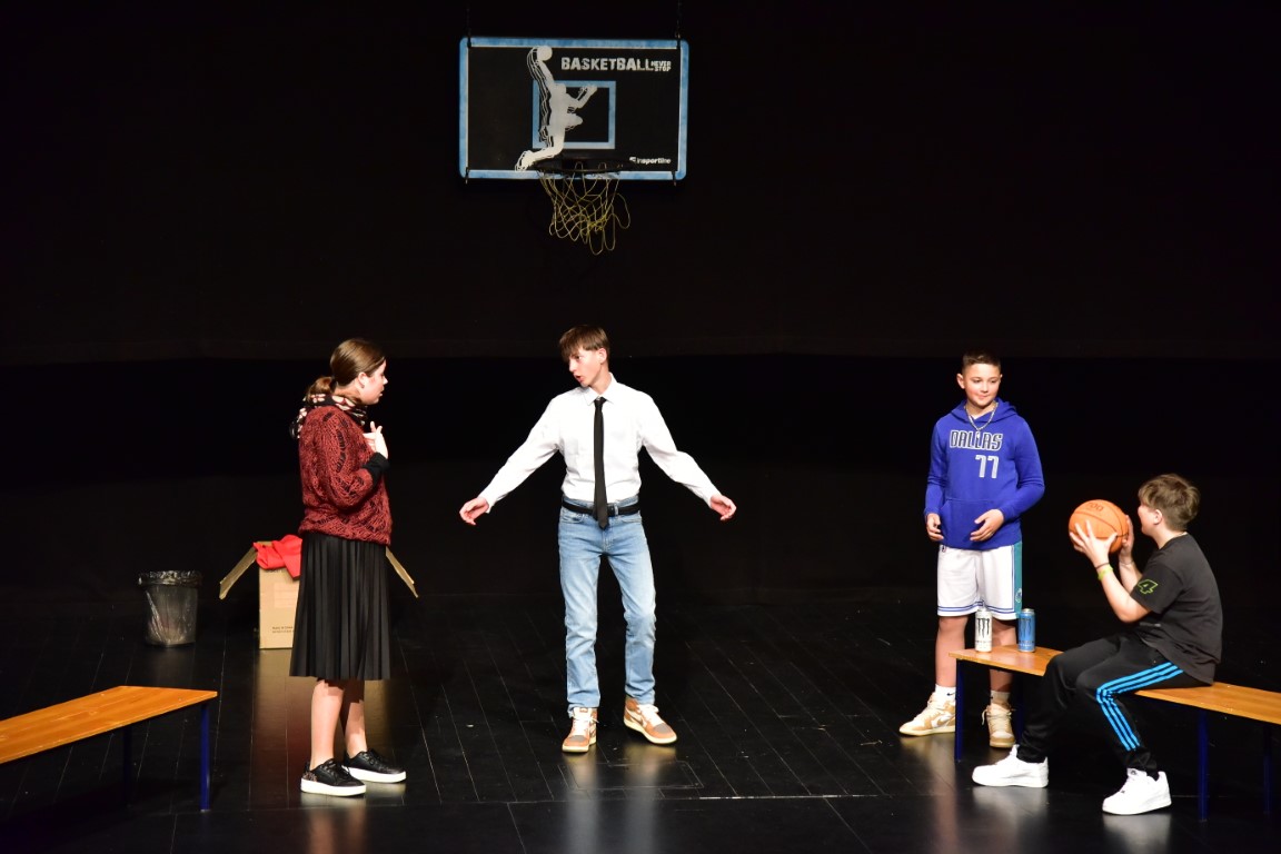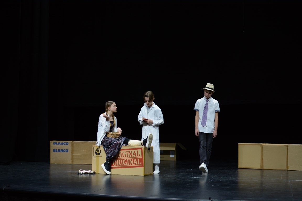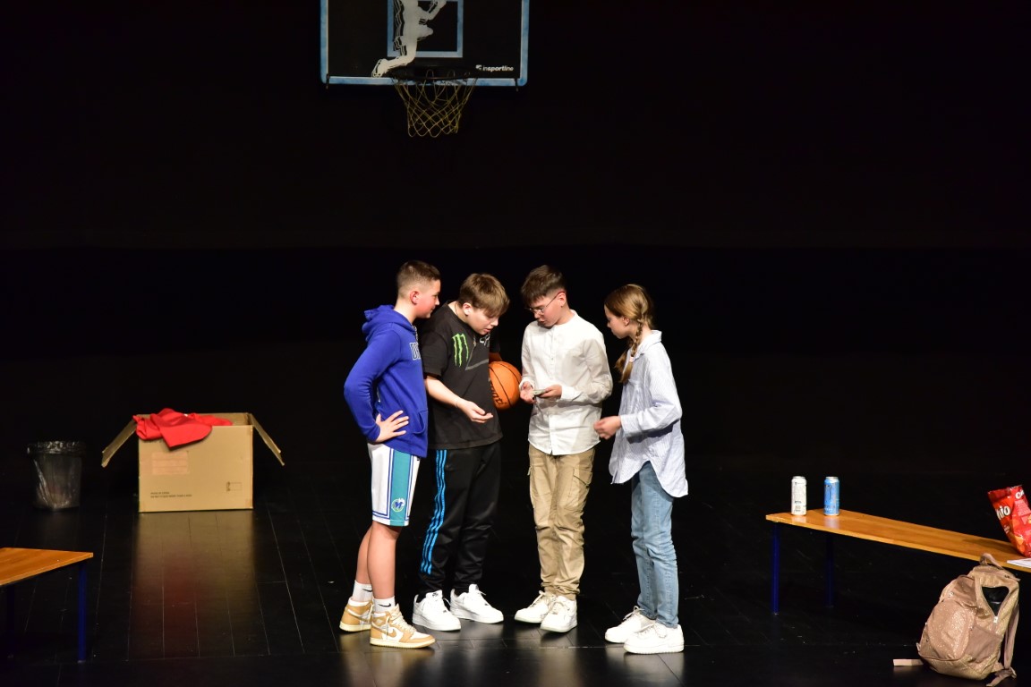Najprej smo odigrali BOZONOVO MAŠČEVANJE, avtorja Janeza Remškarja. Zgodba je postavljena v šolo, kjer spoznamo vse like, ki jih vsak dan srečujemo na šolskih hodnikih. Besedilo je komično, a hkrati zelo stvarno prikazuje odnose v šoli. V igri so nastopili učenci 7. razreda.