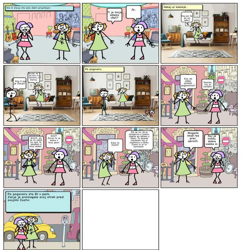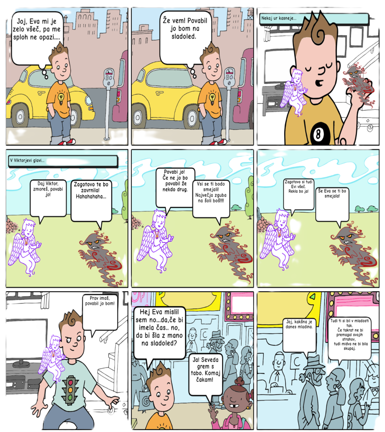 Prav odprt pogovor, izmenjava izkušenj in občutek povezanosti so nam dali tudi izhodišče za ustvarjalni del projekta Erasmus+, ki je sledil v naslednjih dneh. Učenci smo razmišljali o sebi, svojih občutkih in strahovih ter jih izrazili skozi pisanje zgodb in ustvarjanje stripov na temo duševnega zdravja. Ena izmed zgodb, Brez strahu, spodbuja razmislek o soočanju z lastnimi strahovi in sporoča, da strah ni ovira, temveč izziv na poti k pogumu in osebni rasti.