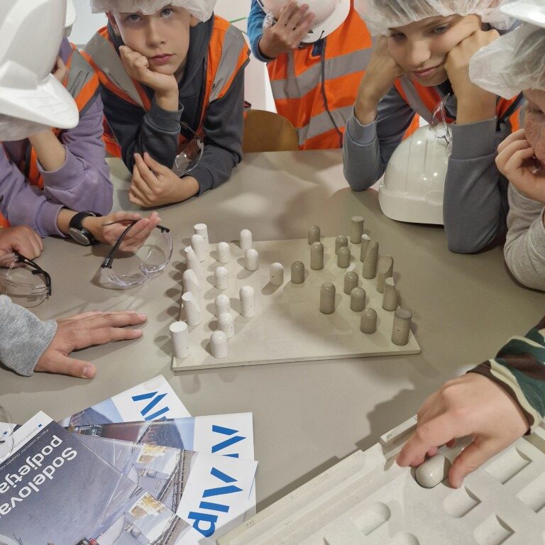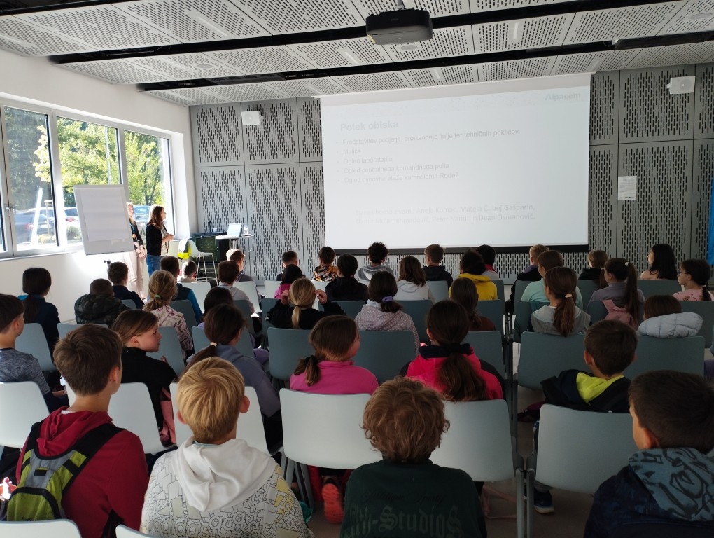 Že ob vhodu v tovarno so nas sprejeli prijazni in gostoljubni uslužbenci podjetja Alpacem Cement. Najprej so nam predstavili podjetje, proizvodne linije ter tehniške poklice v podjetju. Sledila je zanimiva razlaga o mineralih, delu v kamnolomu, tehnologiji cementa ter še mnogo drugega. Nato je sledila malica. Prijazni uslužbenci so nas posladkali s sokovi in rogljički.