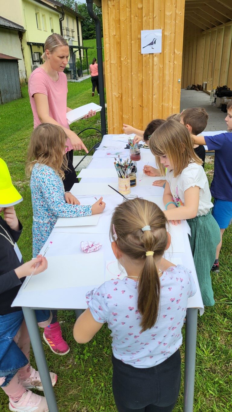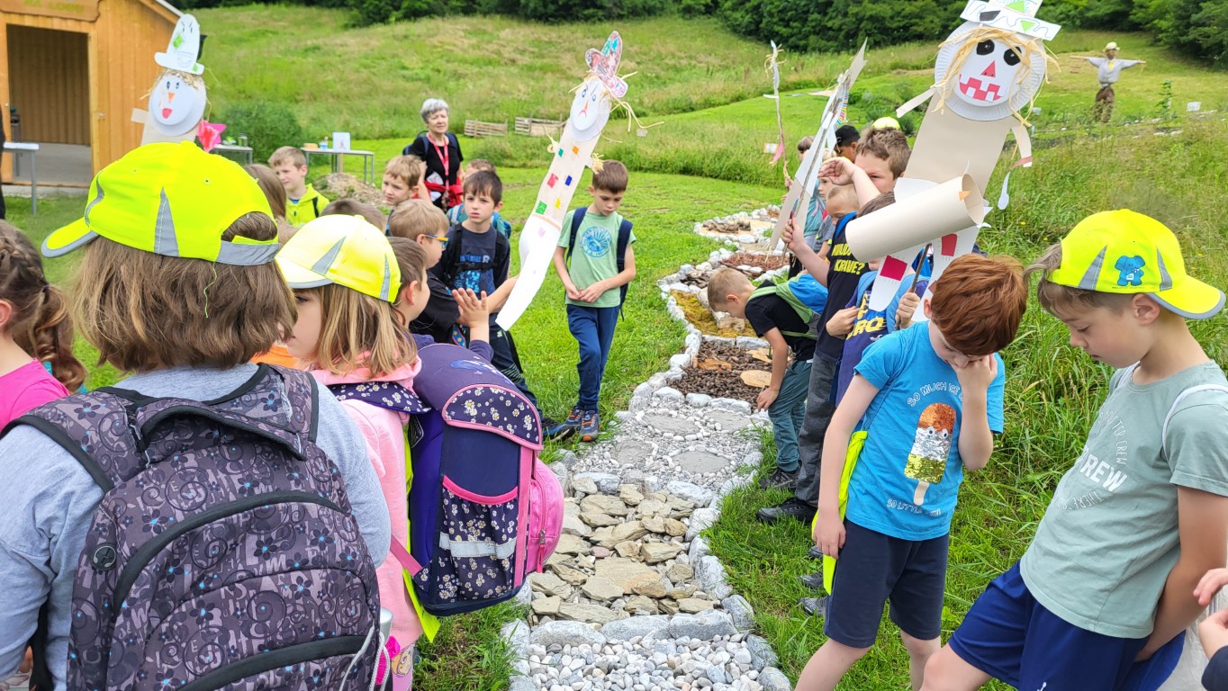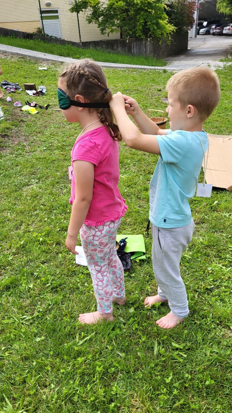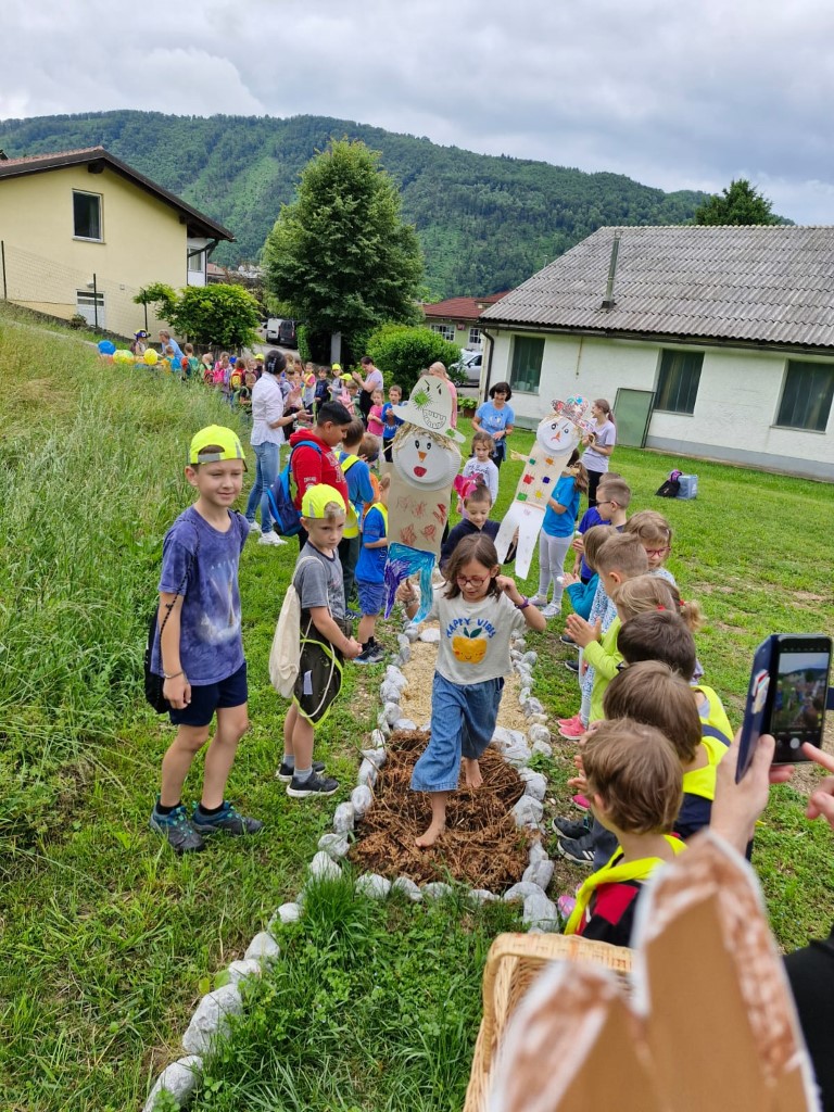 Čutno stezo so otvorila ptičja strašila, ki so se kot prva podala bosa po stezi. Sledile so delavnice za razvijanje različnih čutov.