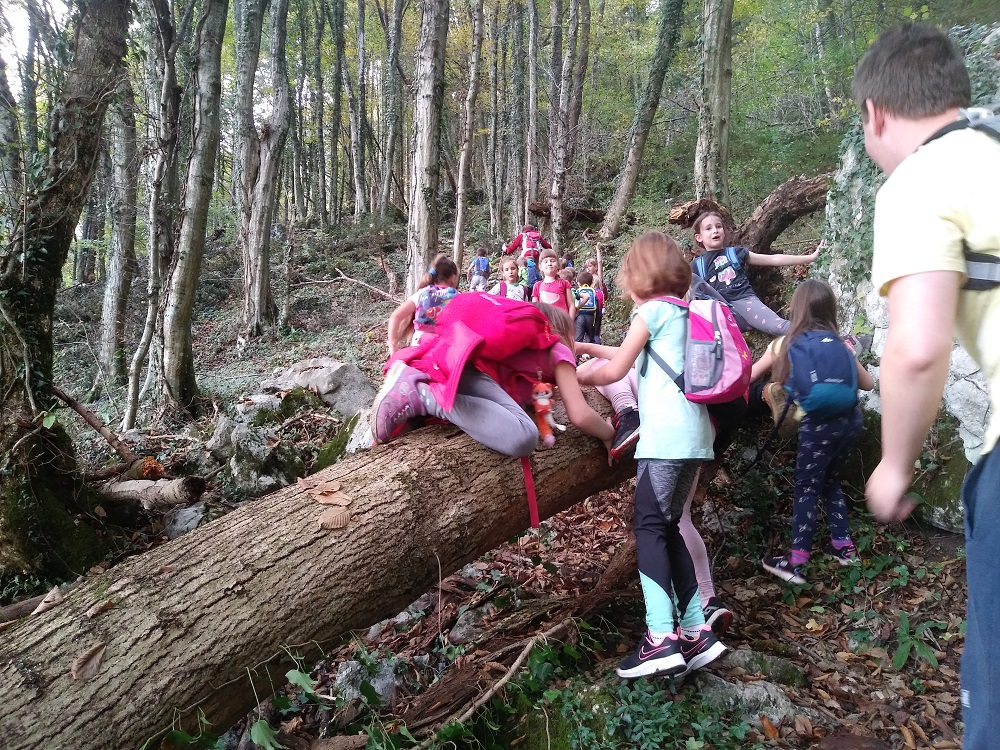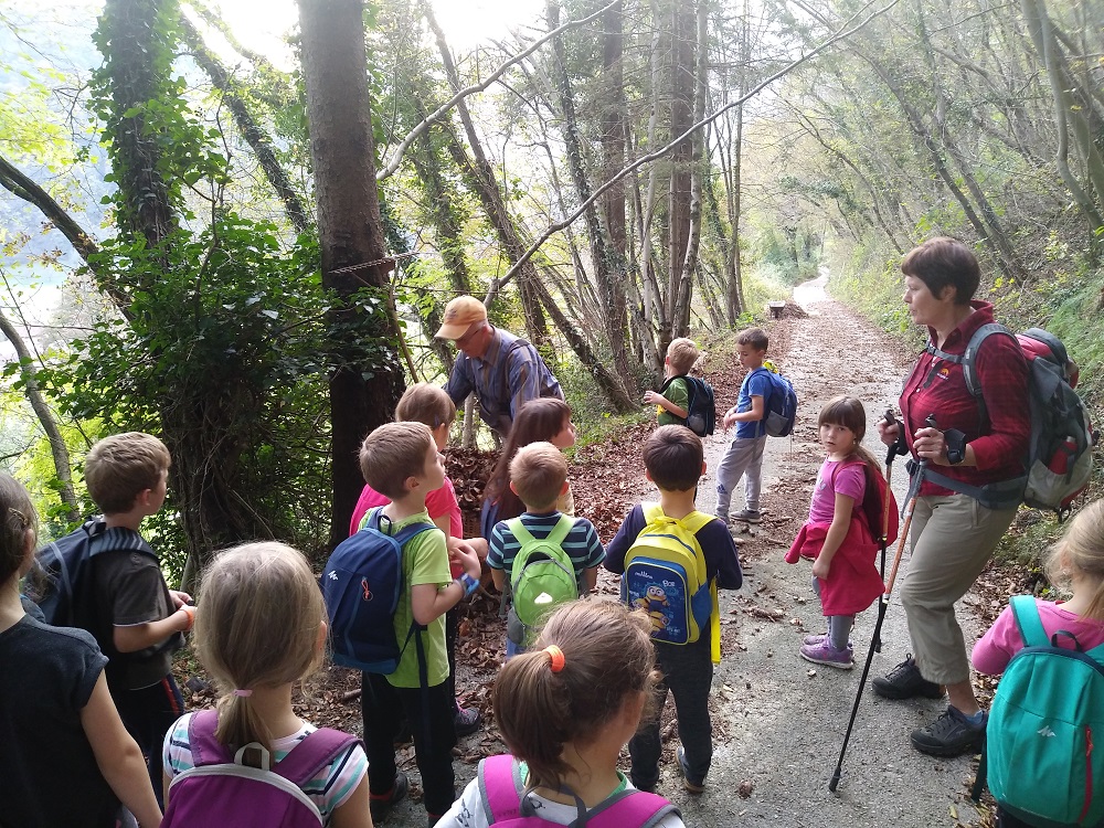 Tudi planinci smo izkoristili lepe in tople jesenske dneve in se odpravili na krajši izlet. Izpred šole smo odšli do avstrijskega pokopališča na Ločah, nadaljevali pot mimo Polukča do cerkvice sv. Petra, kjer smo pomalicali. Polni nove energije smo se še povzpeli po stari avstrijski vojaški poti do ceste, ki vodi na planino Pretovč. Spustili smo se mimo Zatolmina do parka v Tolminu. Sončno in toplo vreme nas je spremljalo celo pot in pripomoglo k našemu zadovoljstvu in veselju.