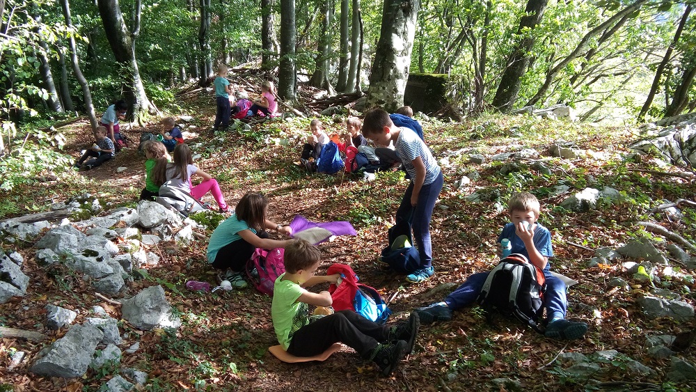 Čas na vrhu nam je ob dobri malici, pisanju planinskih dnevnikov, igranju spoznavnih iger in petju hitro minil in kmalu smo se morali podati proti Ljubinju, kjer so nas na igrišču pričakali starši.