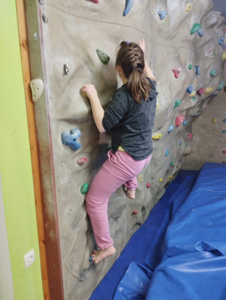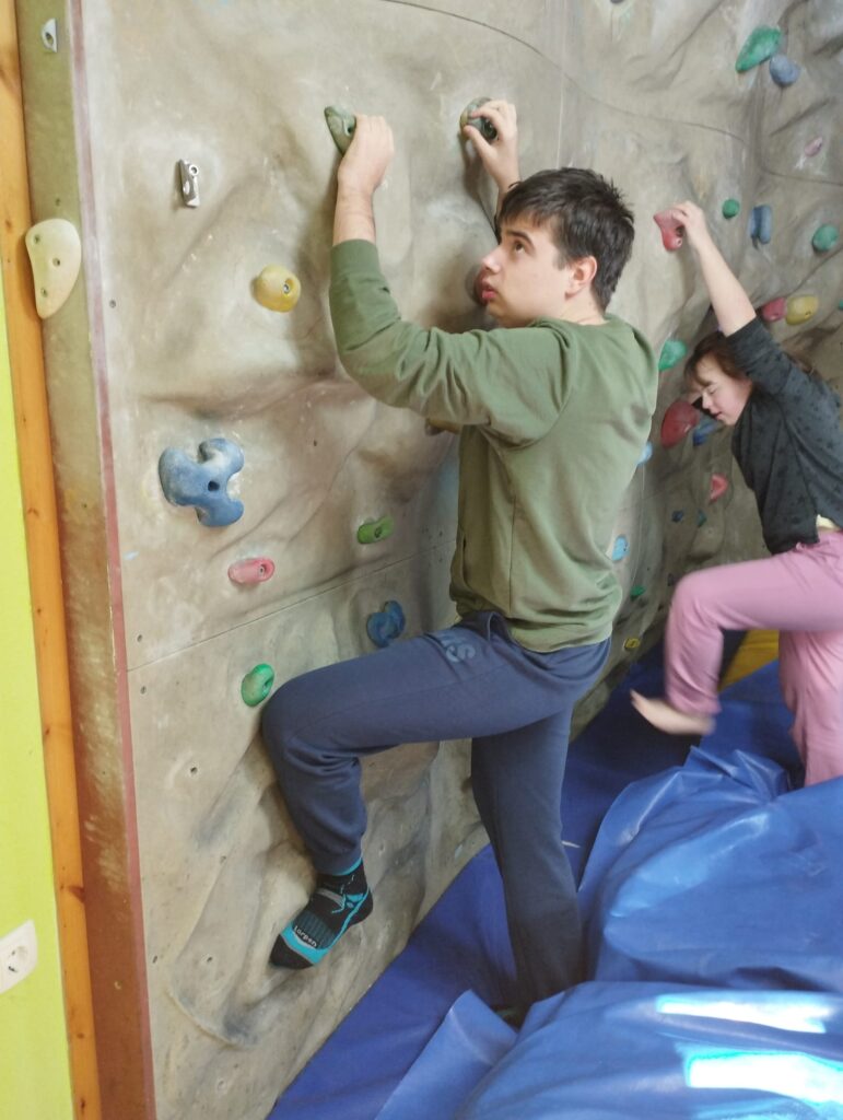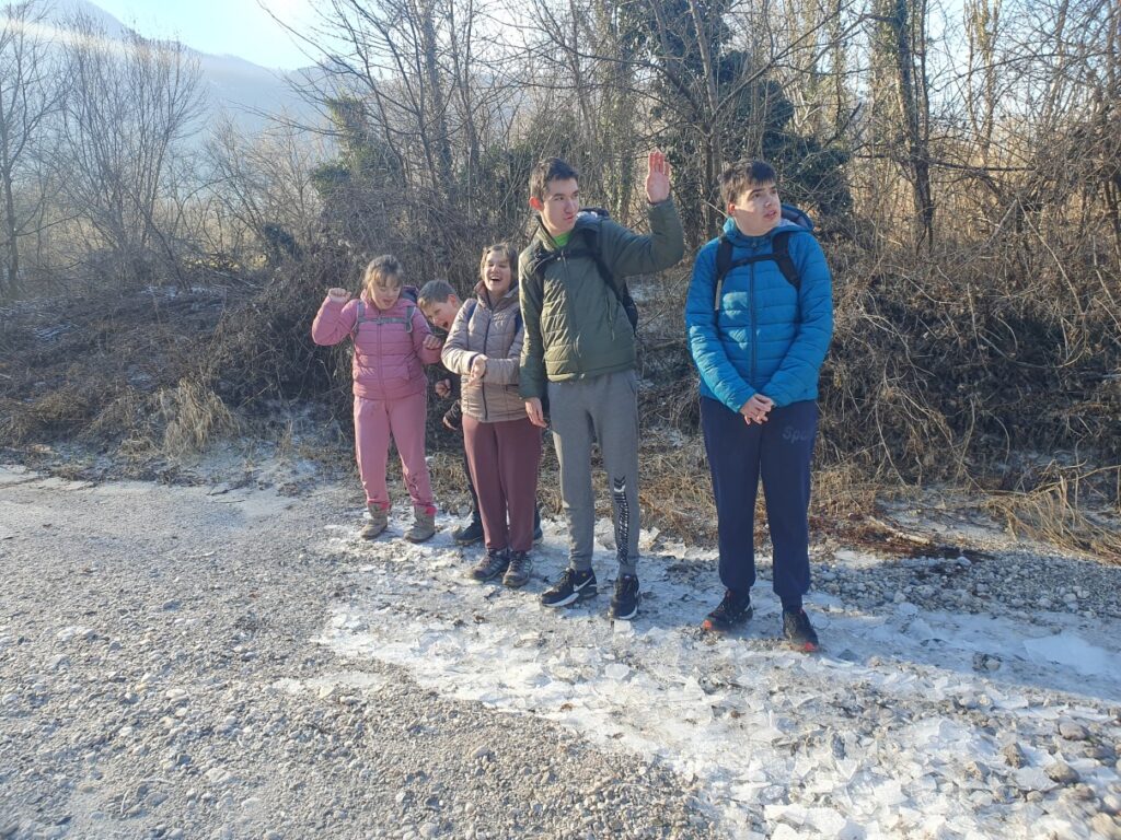 Planinci radi tudi plezamo, zato smo se 30. 1. 2024 odpravili v gorniški učni center. Ni nam bilo treba iti daleč, vendar smo lep, sončen dan izkoristili za sprehod ob Soči. Zima je tudi letos mila in na poti smo lahko le opazovali ivje ter poslušali lomljenje ledene skorje, ki se je še obdržala v lužah v predelih, skritih v senci.